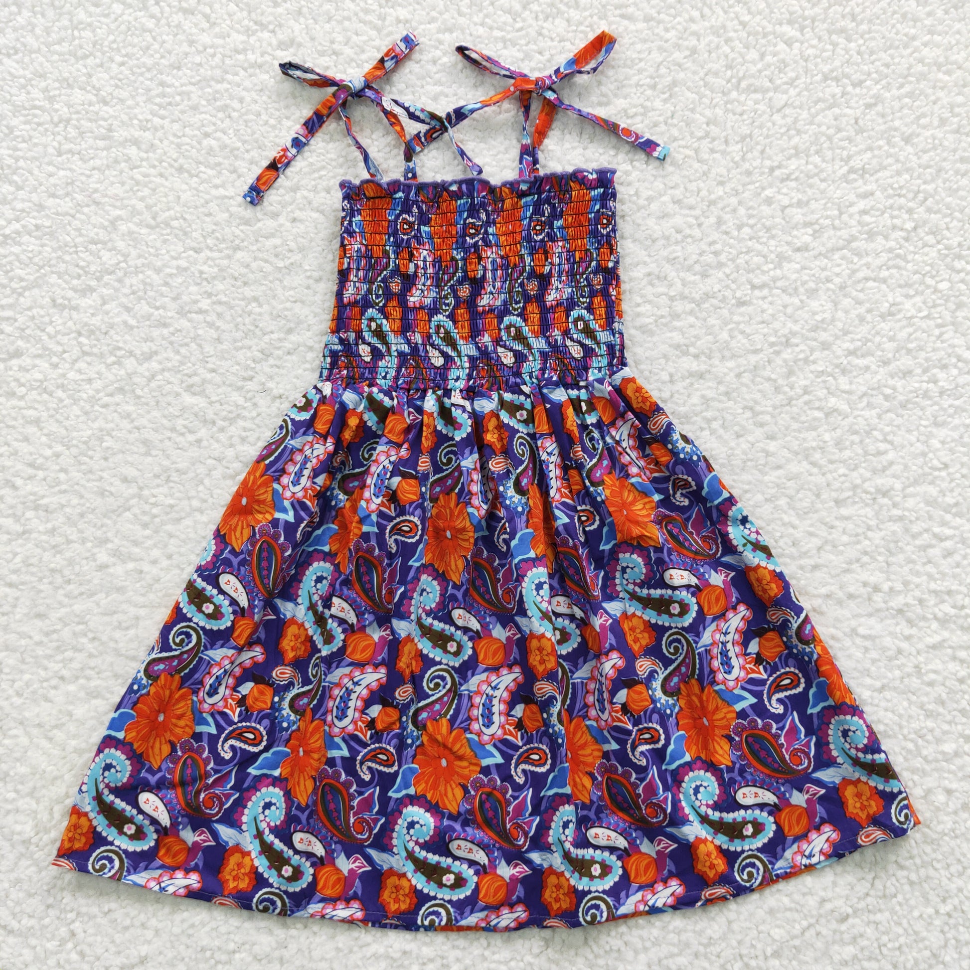 GSD0405 Girls spaghetti strap paisley flowers summer smocking dress