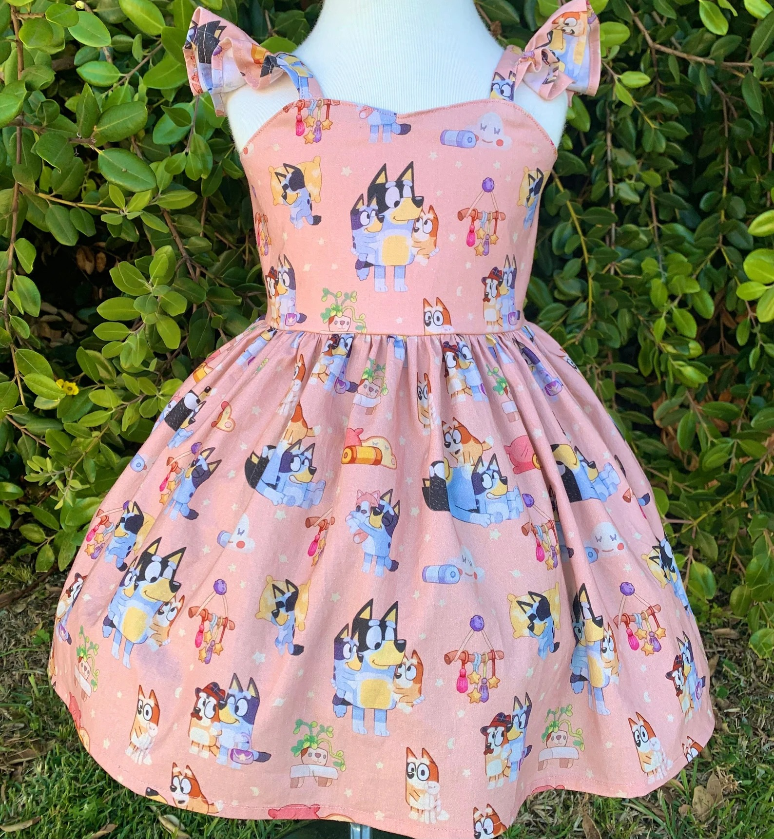 GSD0422 Flutter sleeves pink cartoon dog summer dress