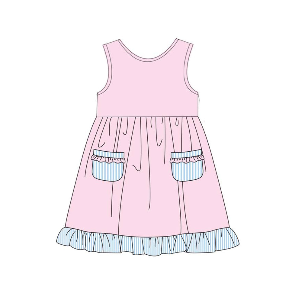 GSD0608 Pink Pockets Girls Knee Length Dress