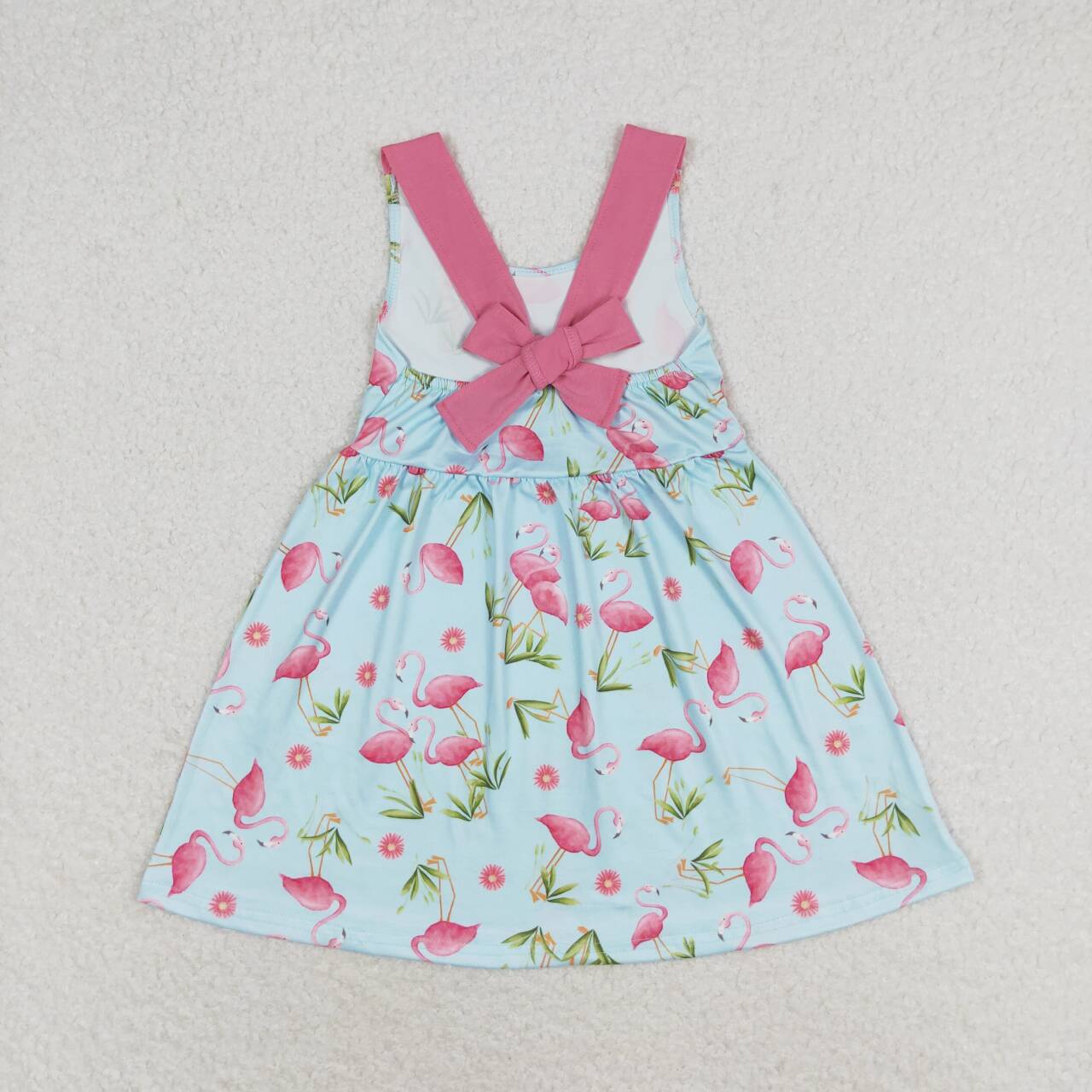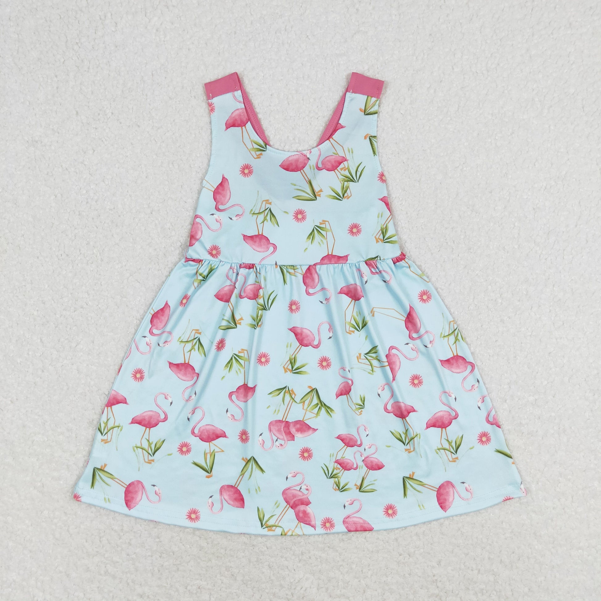 GSD0693 Flamingo Print Girls Summer Knee Length Dress