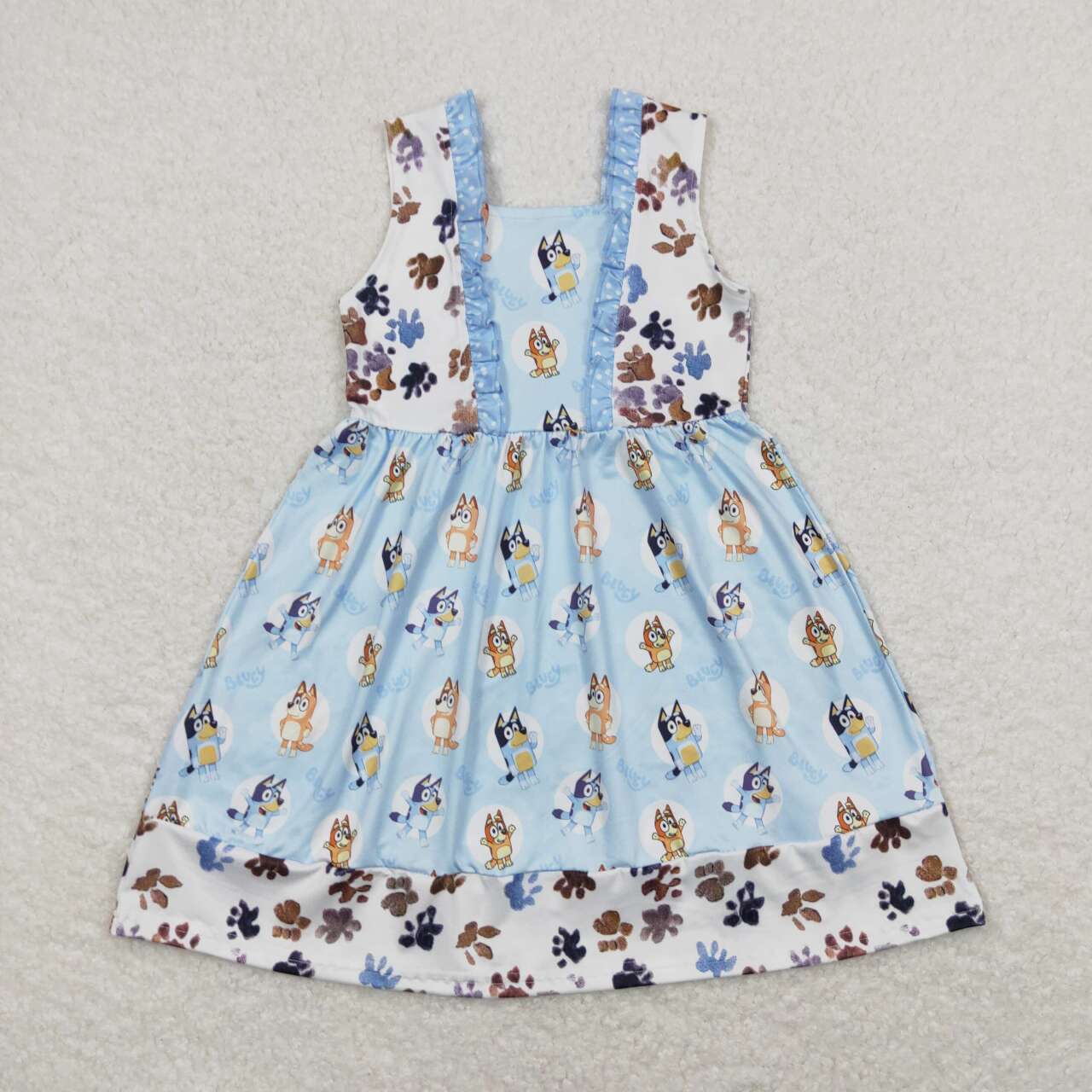 GSD0864 Blue Cartoon Dog Girls Summer Knee Length Dress