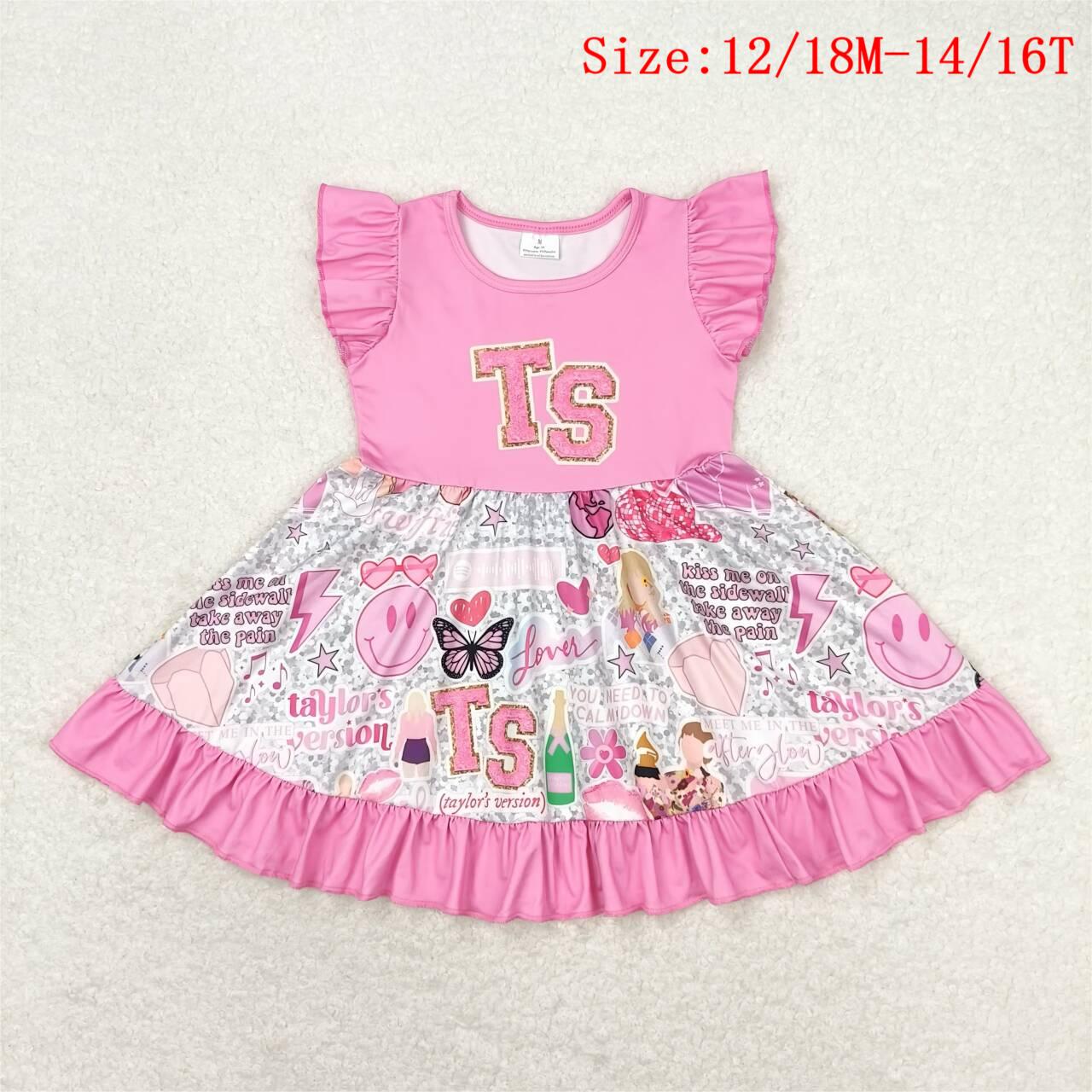 GSD0932 Pink Singer Swiftie Print Girls Summer Knee Length Dress