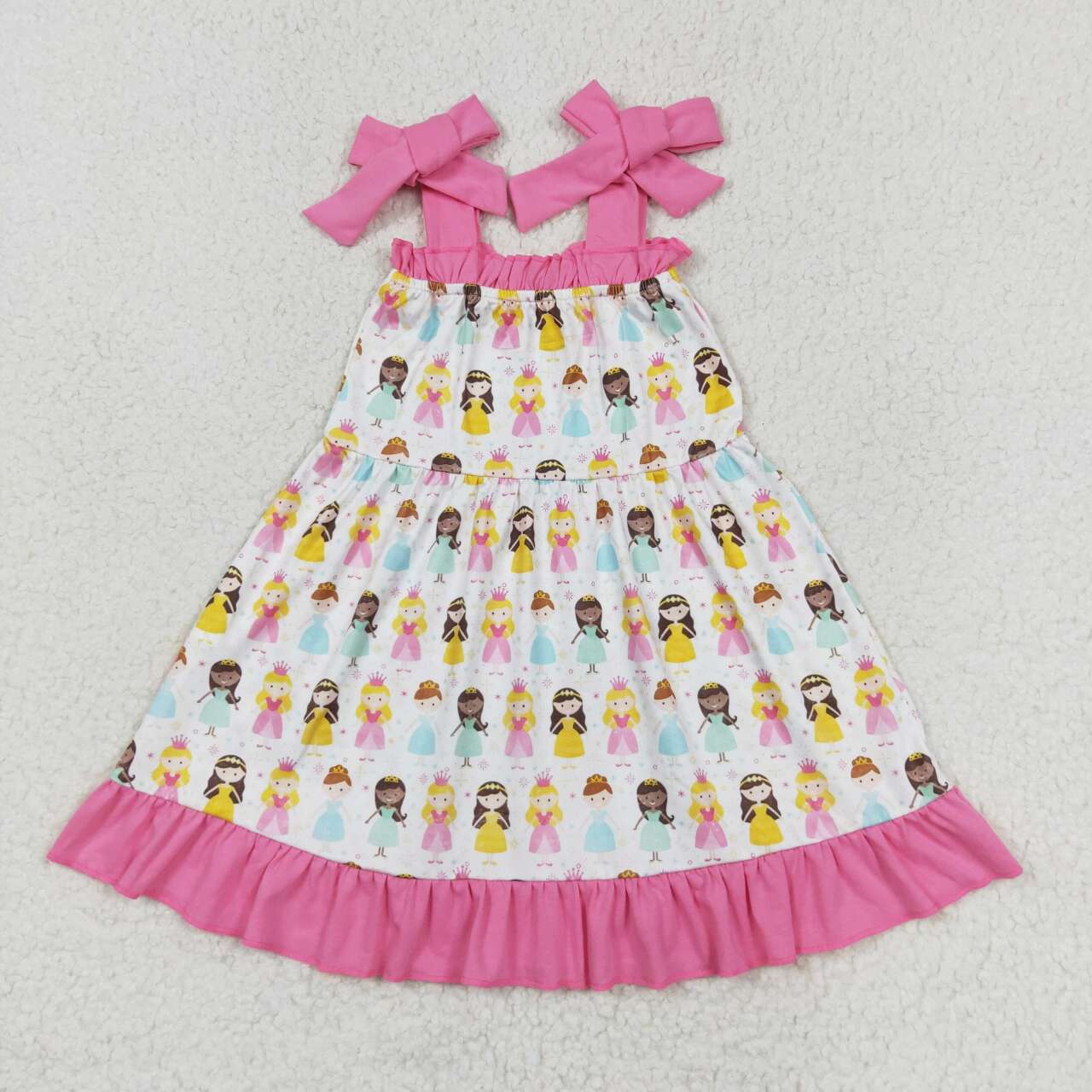 GSD1097 Princess Print Girls Knee Length Summer Dress