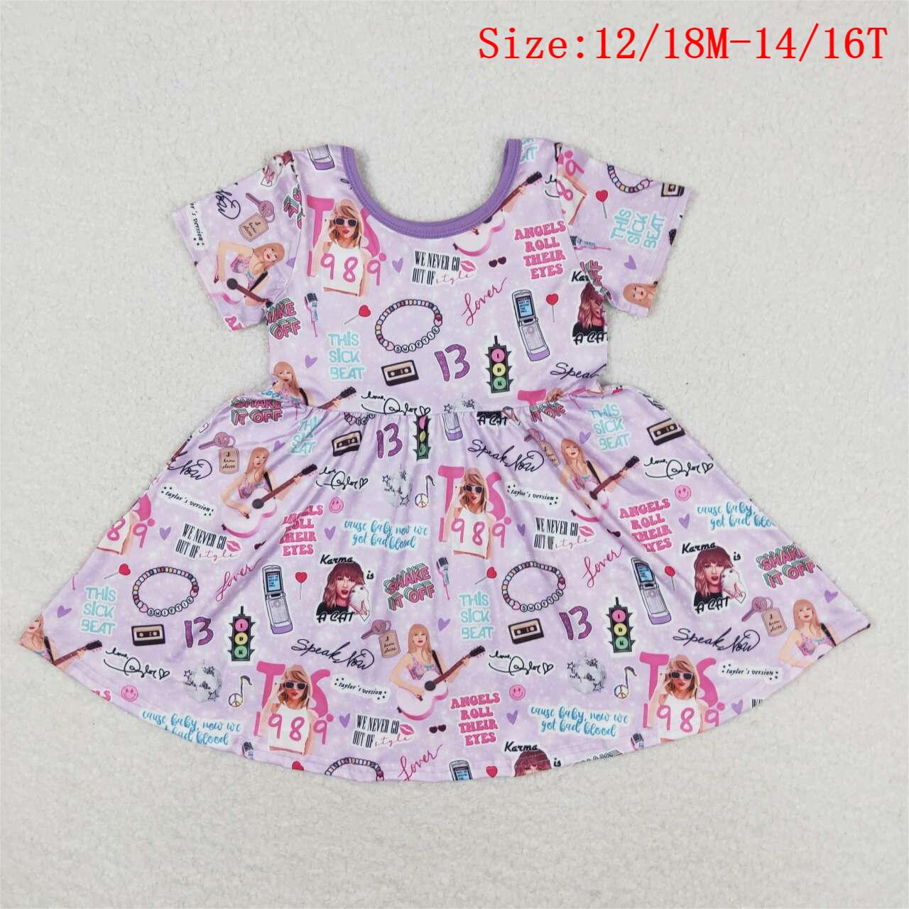 GSD1167 Purple Singer Swiftie Print Girls Knee Length Summer Dress
