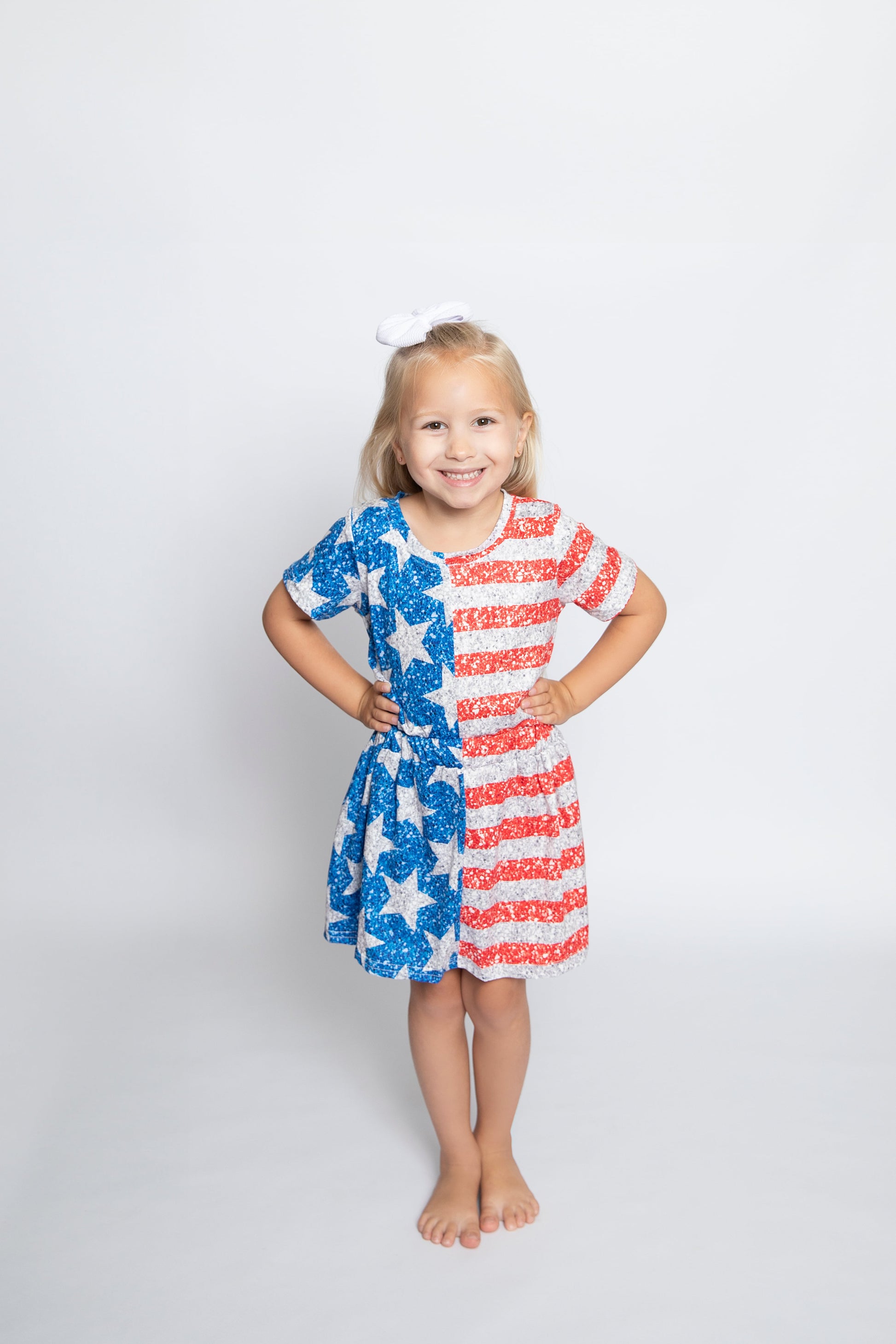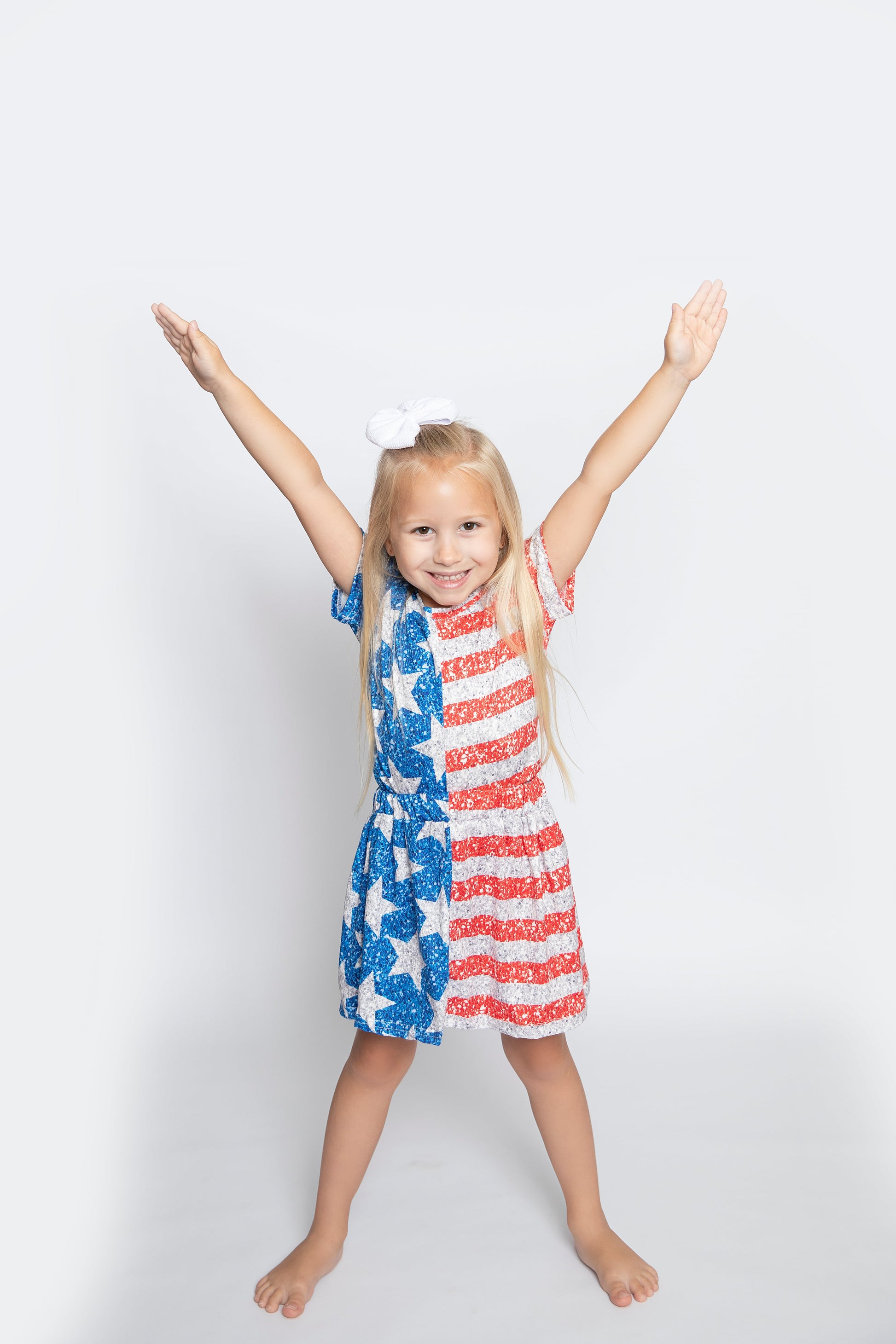 GSD1263 Stars Red Stripes Print Girls 4th of July Clothes Set