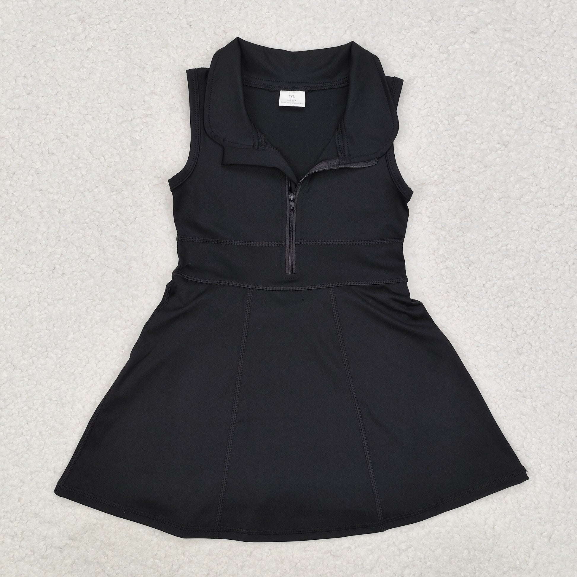 GSD1428 Black Color Girls Knee Length Zipper Yoga Dress