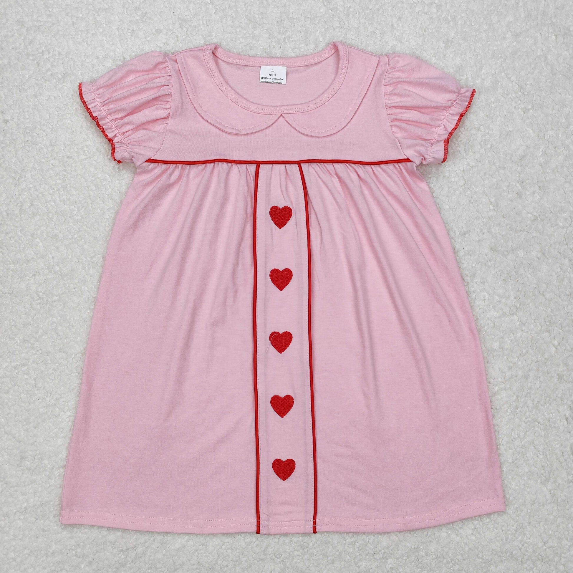 GSD1453 Heart Embroidery Pink Girls Valentine's Day Knee Length Dress