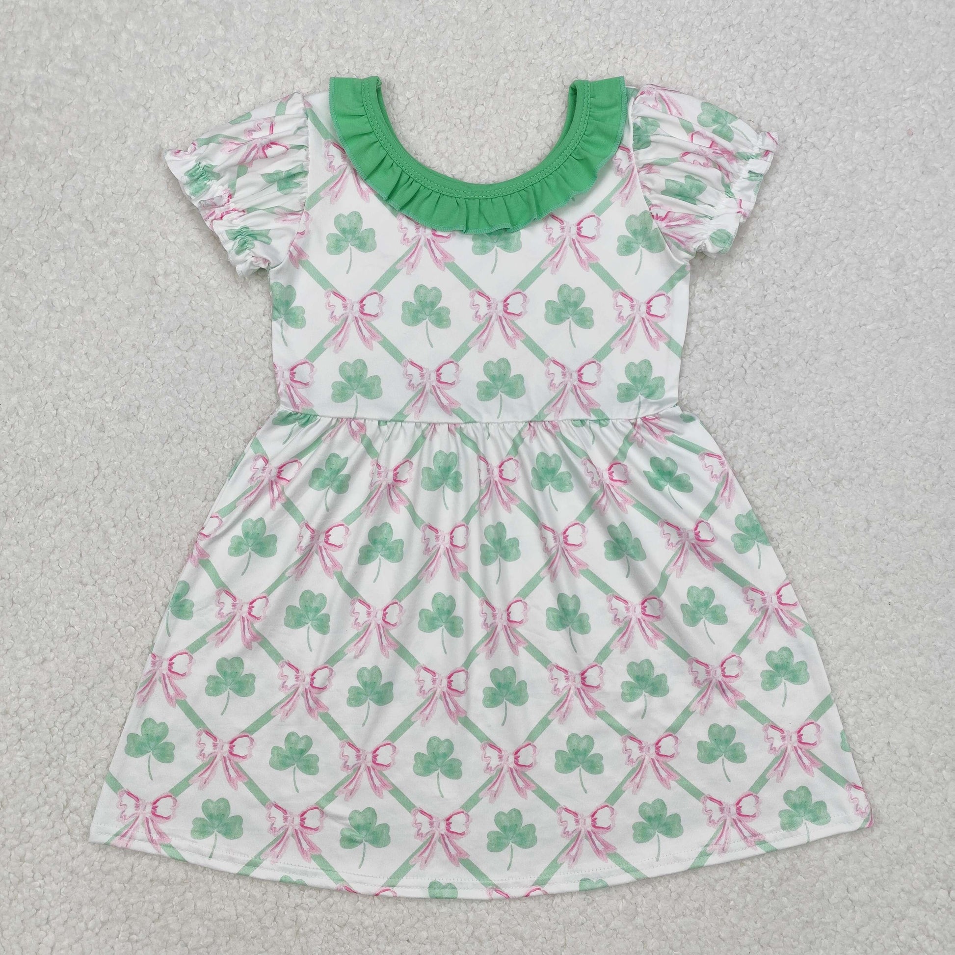 GSD1493 Leaf Bows Print Girls St. Patrick's Day Knee Length Dress