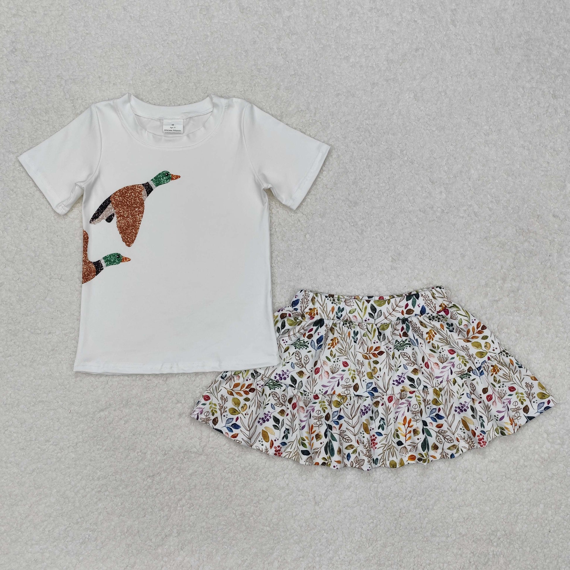 GSD1546 Duck Top Leaf Skirts Girls Summer Clothes Set