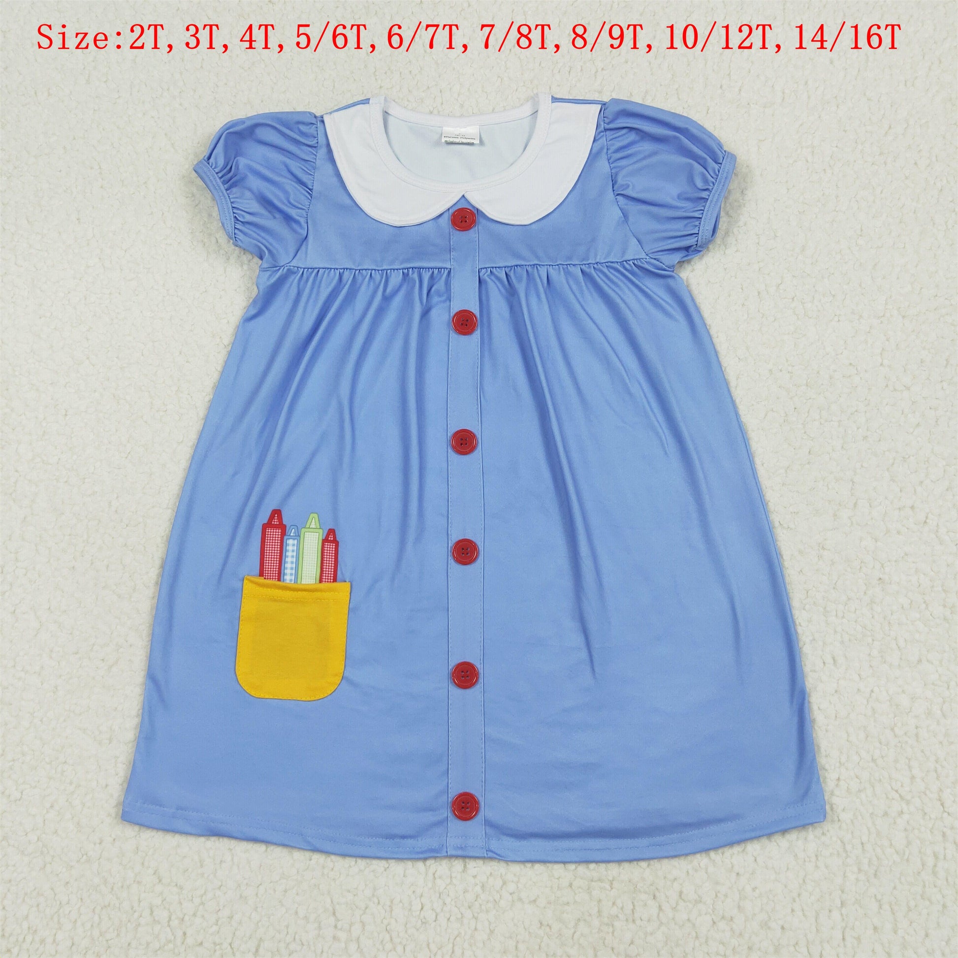 GSD1821 Pen Blue Print Girls Back to School Knee Length Dress