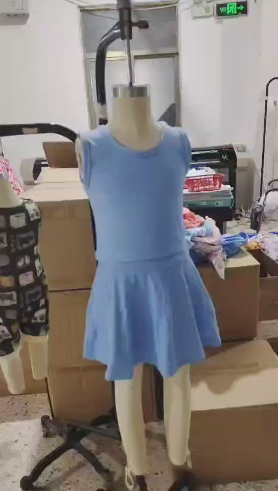 GSD1985 Blue Color Tank Top Skirts Shorts Girls Summer Yoga Clothes Set