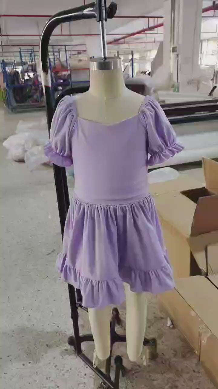 GSD2099 Purple Color Crop Top Ruffle Skirts Shorts Girls Summer Yoga Clothes Set