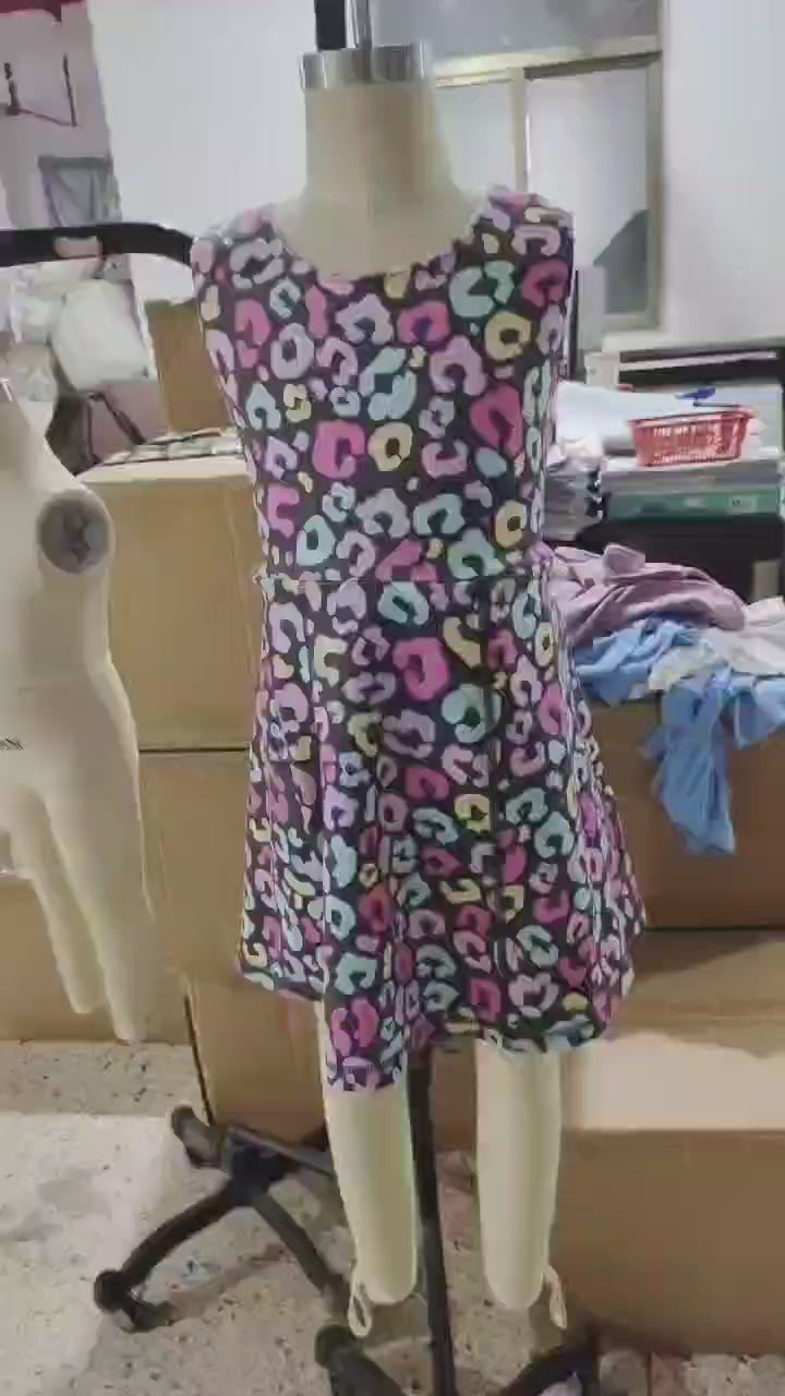 GSD2175 Colorful Leopard Print Girls Summer Backless Shorts Knee Length Yoga Dress