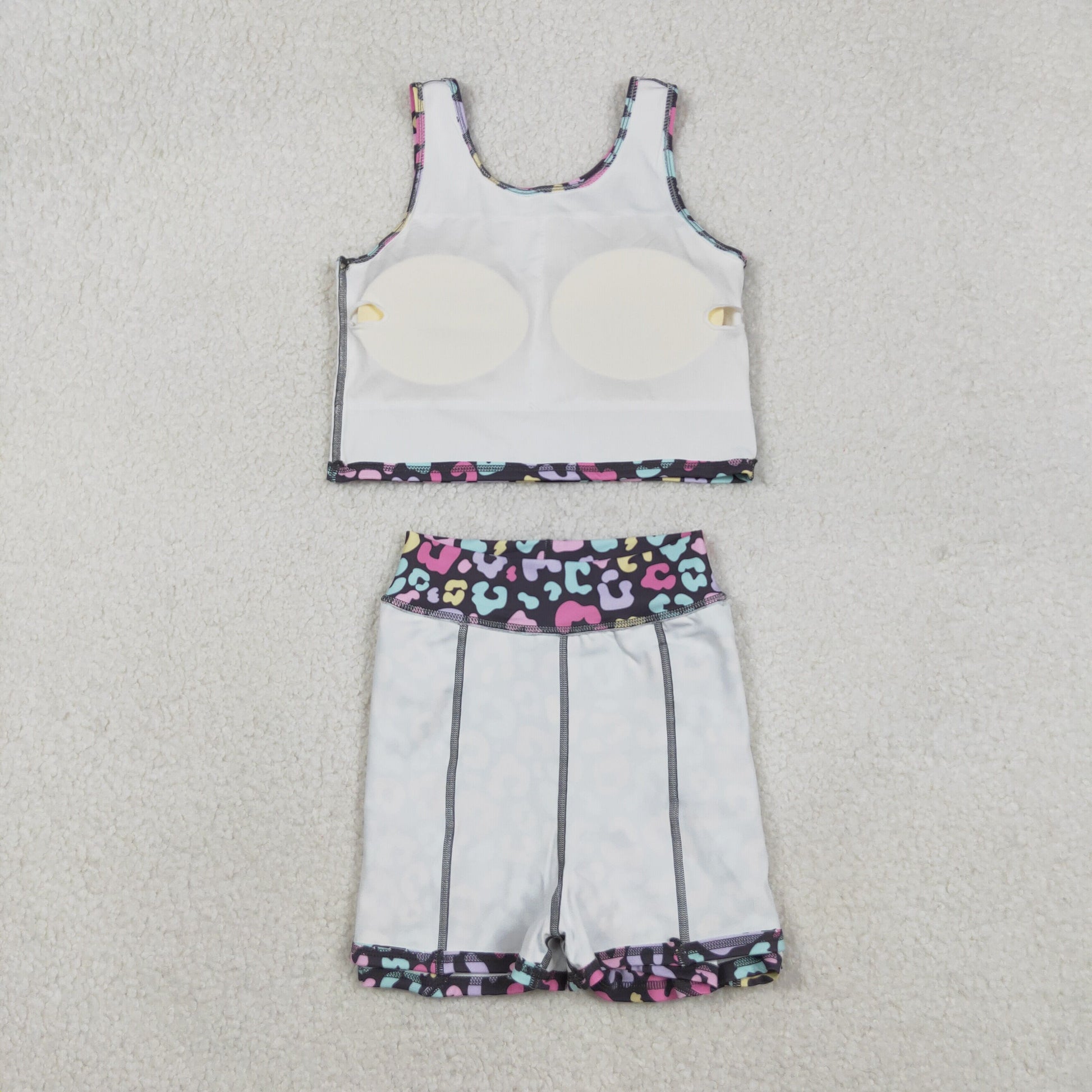 GSD2176 Colorful Leopard Print Skirts Shorts Girls Summer Yoga Clothes Set
