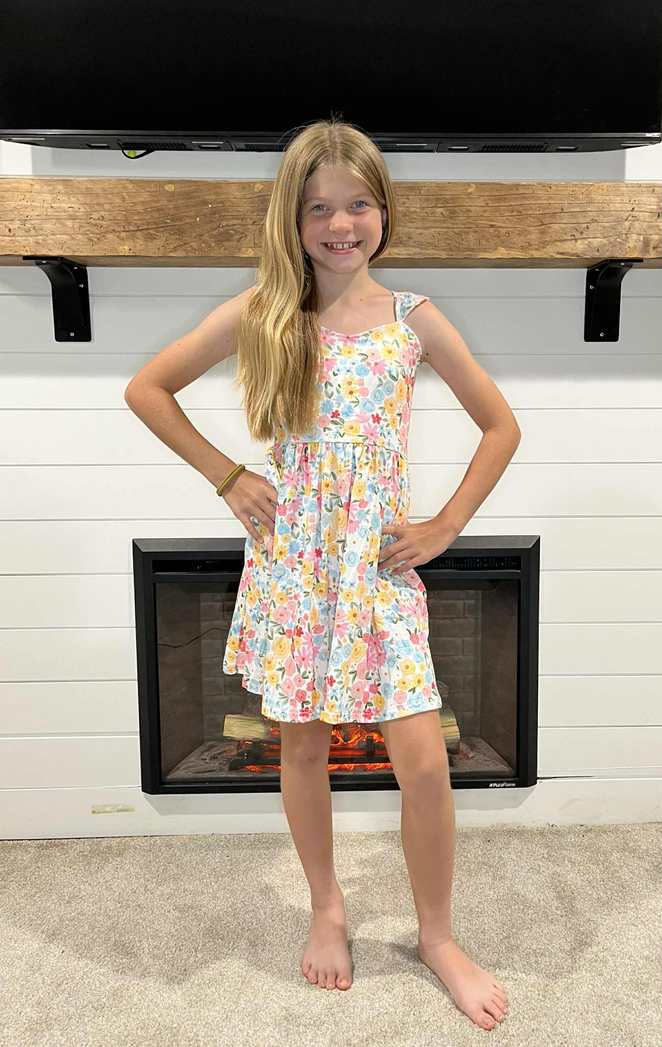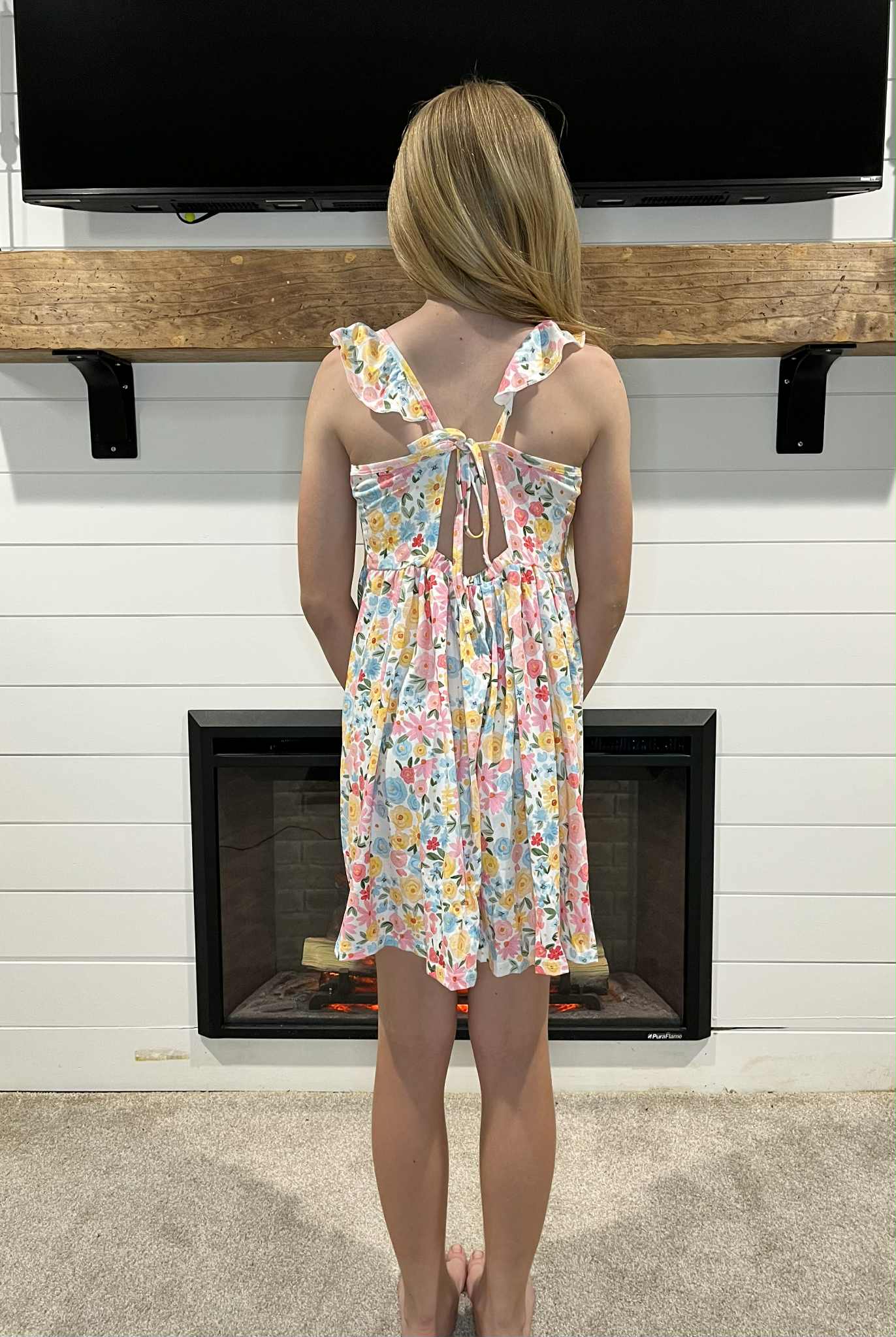 GSD2207 Colorful Flowers Print Girls Backless Knee Length Dress