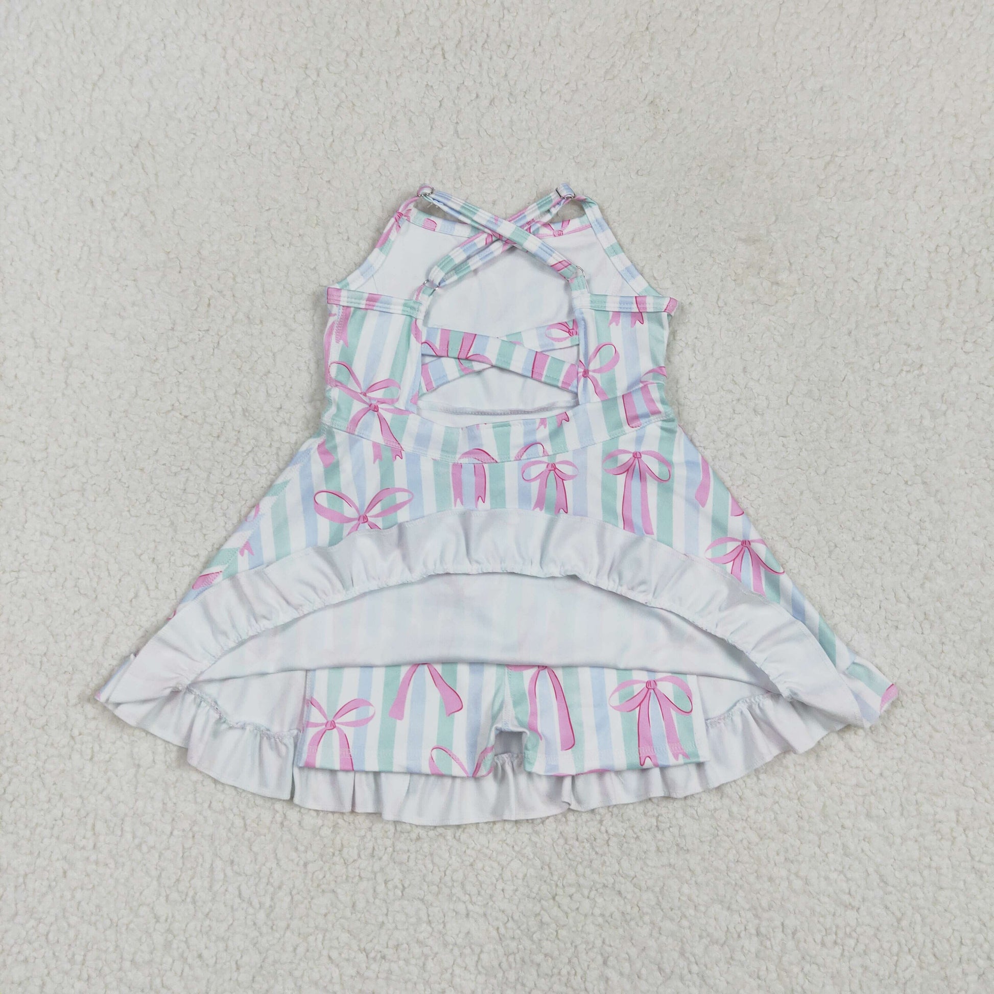 GSD2297 Bows Stripes Print Girls Summer Knee Length Shorts Yoga Dress