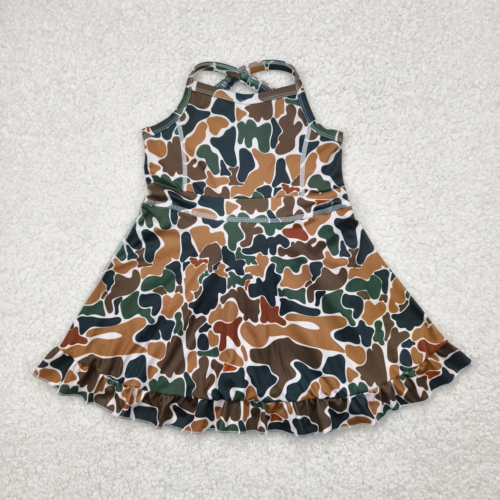 GSD2309 Brown Camo Print Girls Summer Knee Length Shorts Yoga Dress