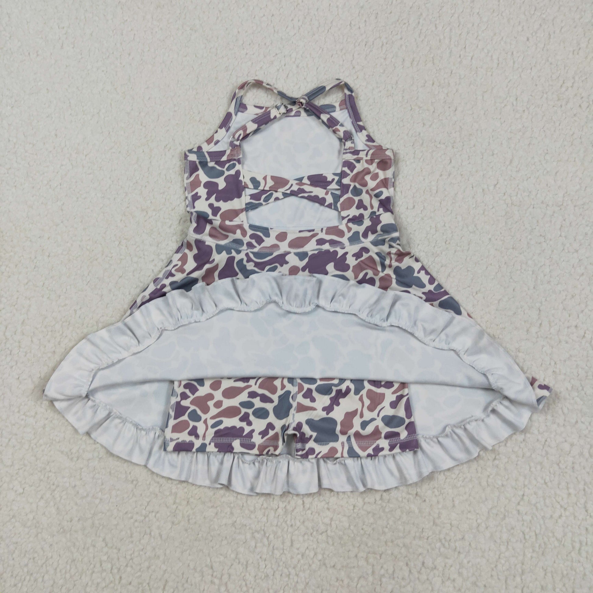 GSD2310 Green Purple Camo Print Girls Summer Knee Length Shorts Yoga Dress