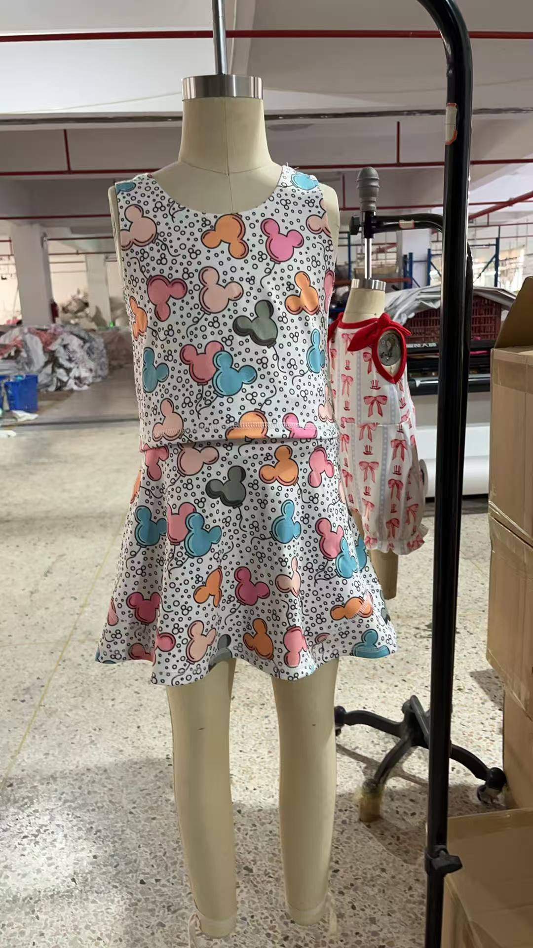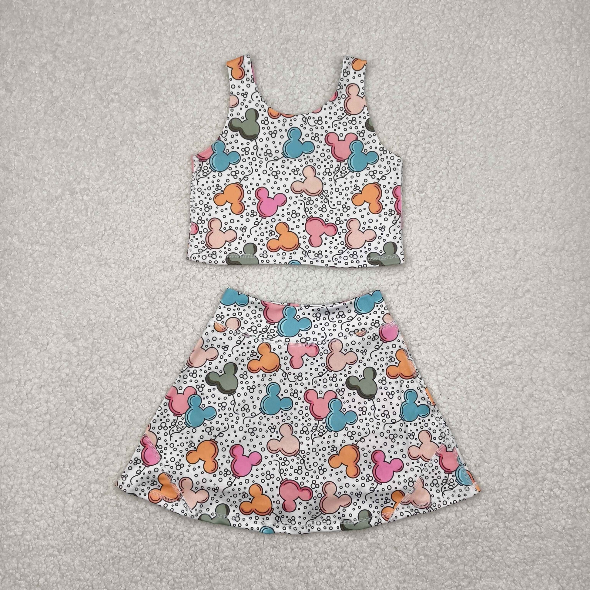 GSD2331 Cartoon Mouse Tank Top Skirts Shorts Girls Summer Yoga Outfits