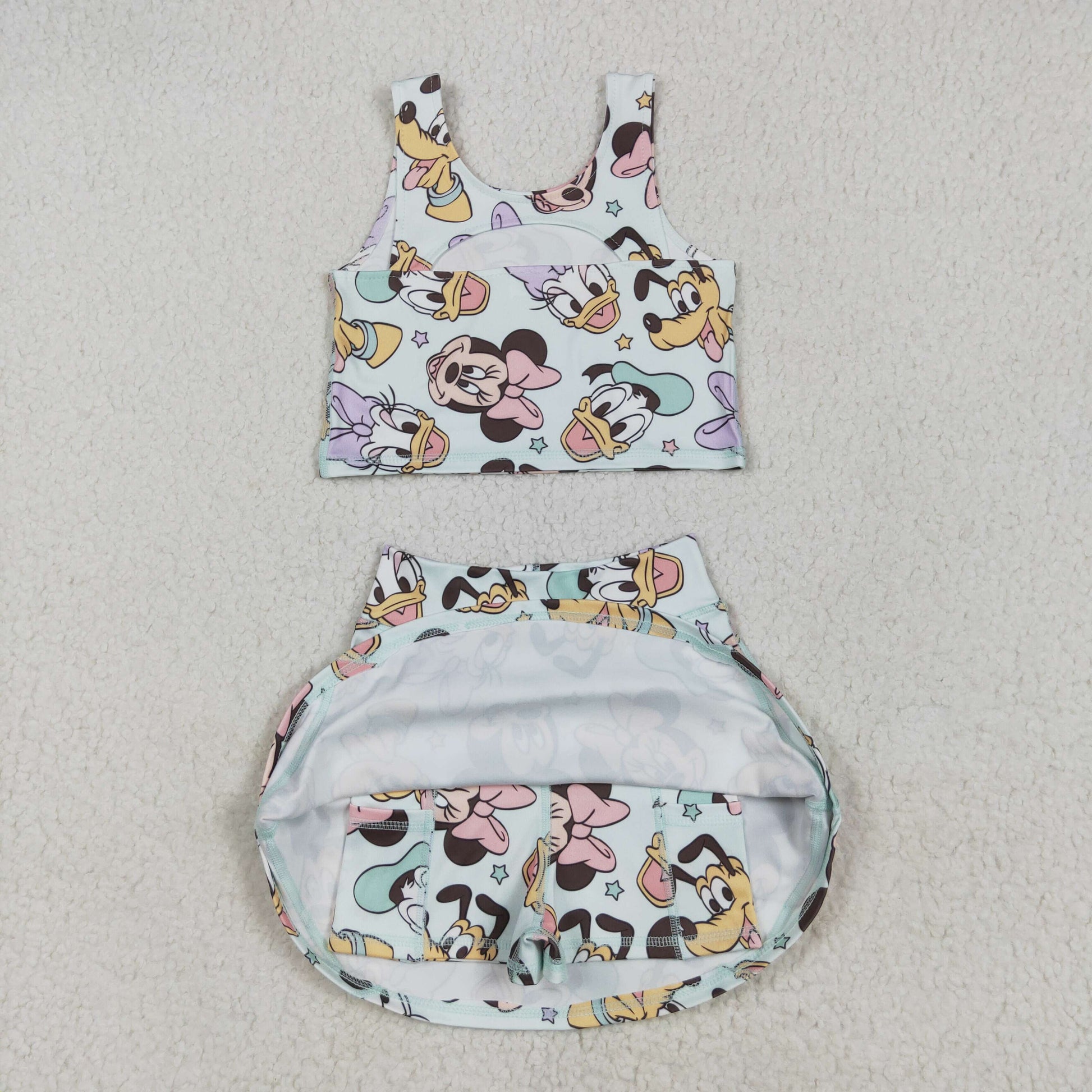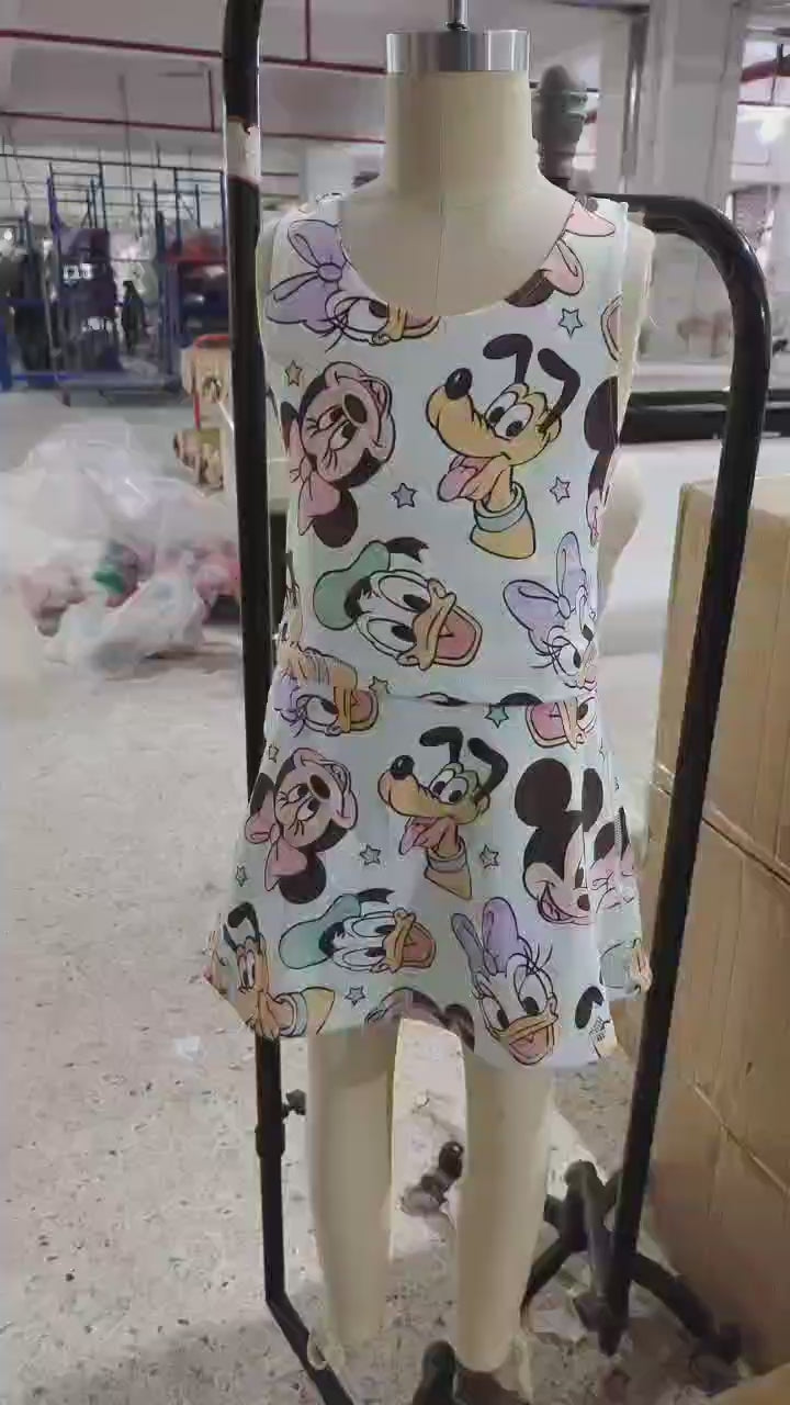 GSD2353 Cartoon Mouse Print Girls Summer Knee Length Shorts Yoga Dress
