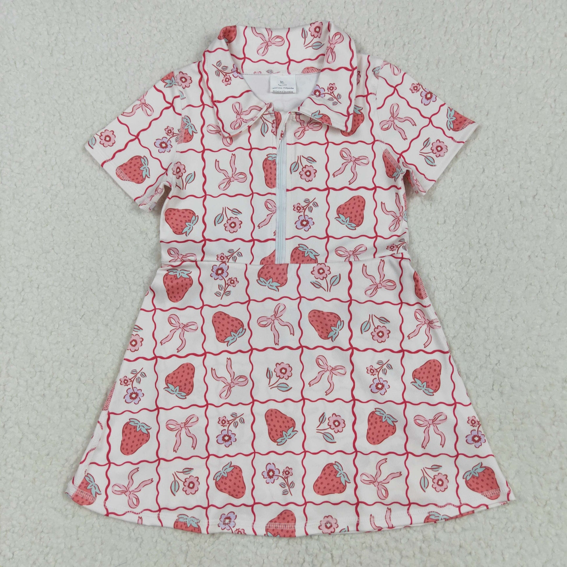 GSD2407 Strawberry Flowers Bows Print Girls Zipper Summer Knee Length Yoga Shorts Dress
