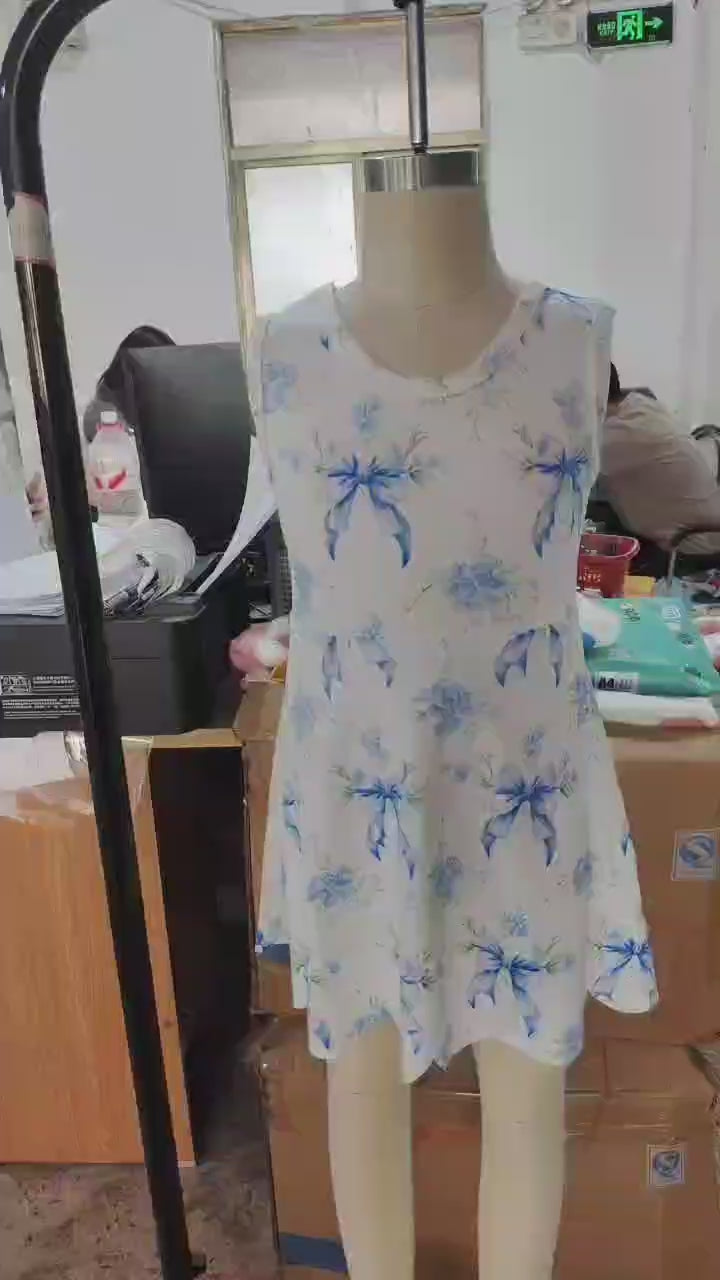GSD2587 Blue Flowers Bows Girls Summer Knee Length Yoga Dress