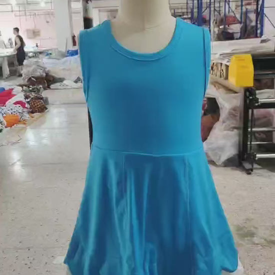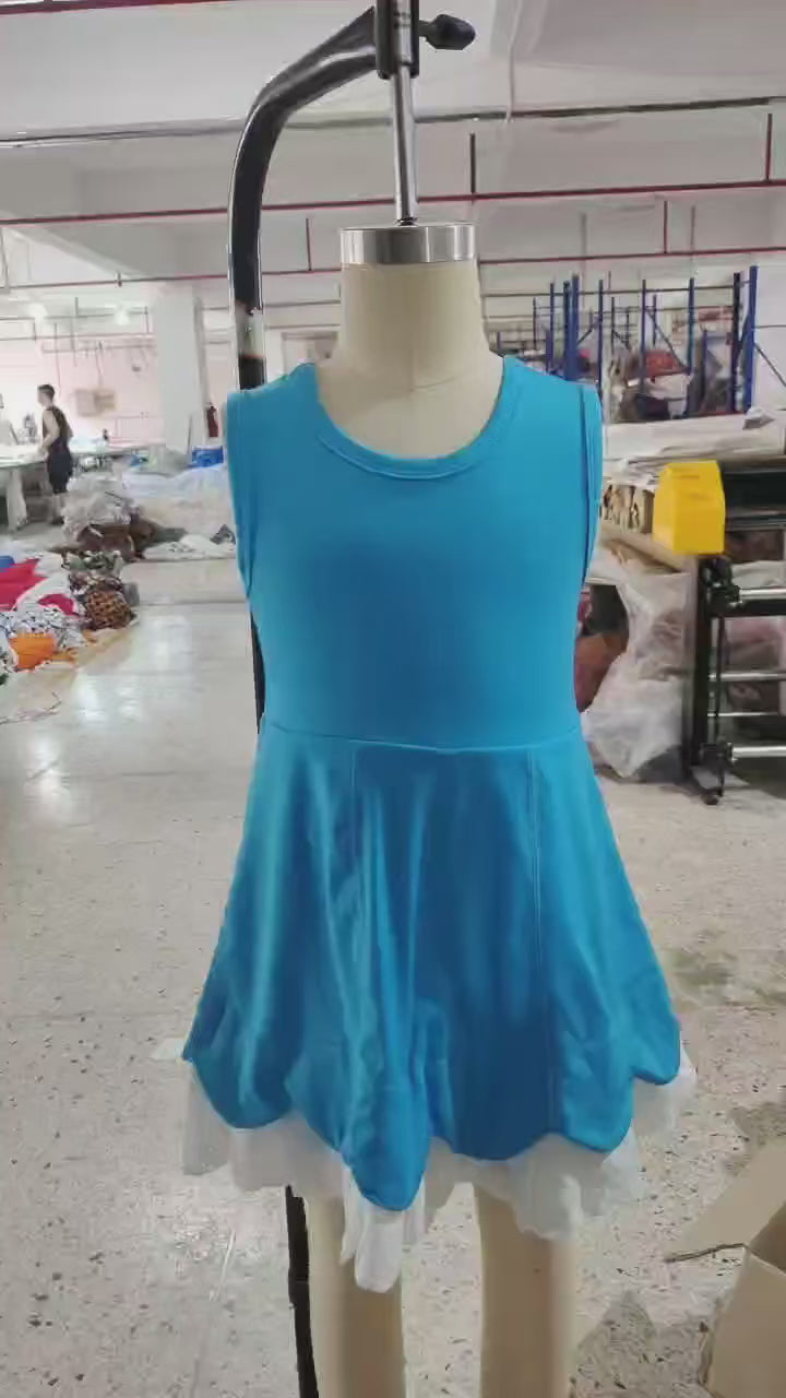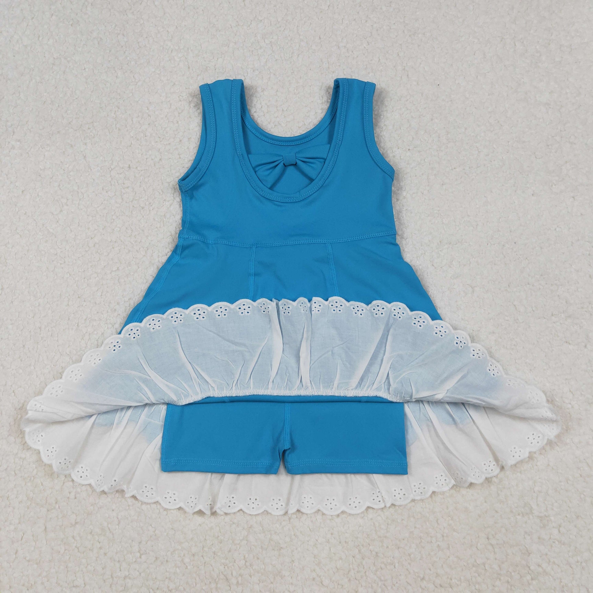 GSD2680 Blue Color Girls Ruffles Knee Length Yoga Dress