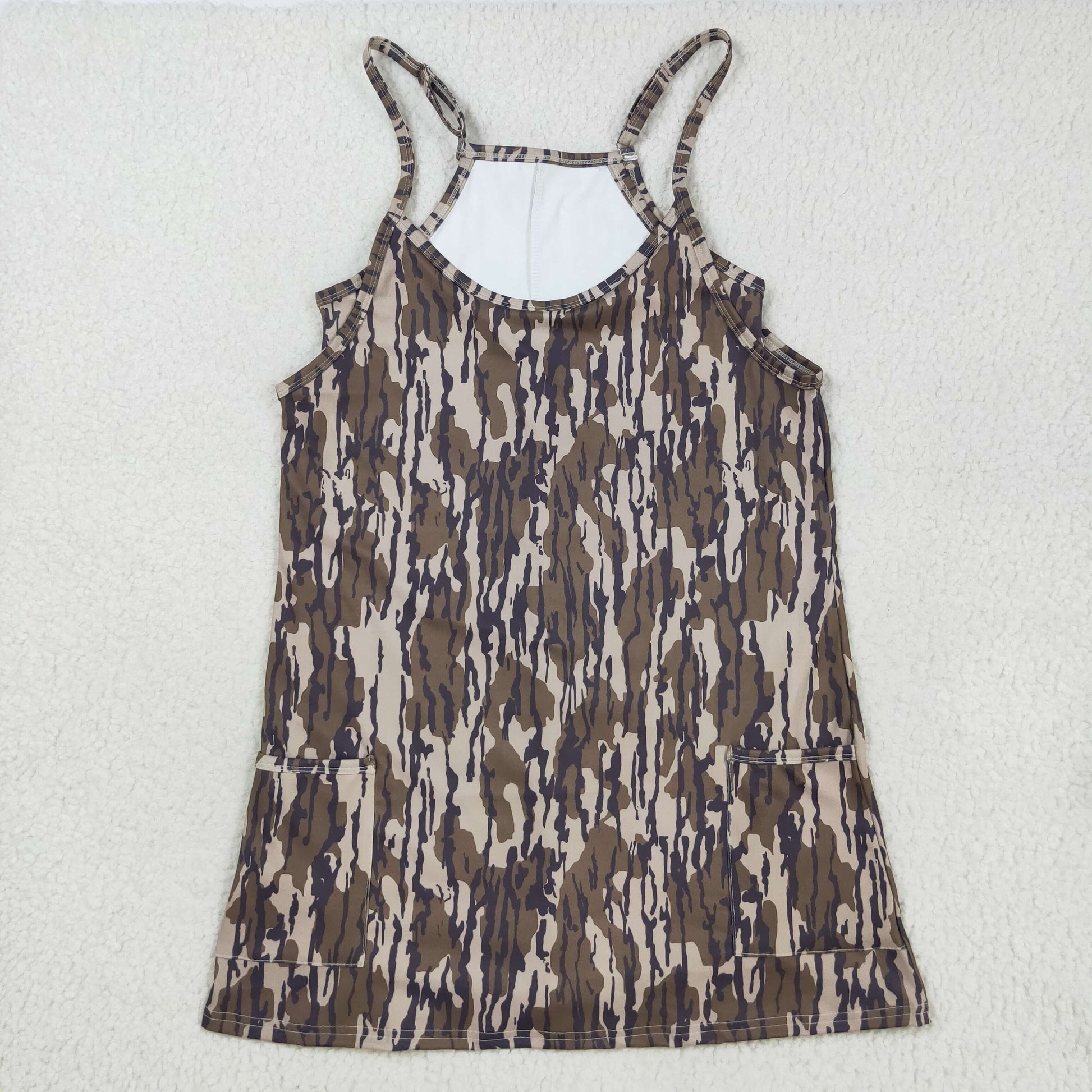GSD2744 Adult Camo Print Strap Pockets Woman Summer Yoga Dress