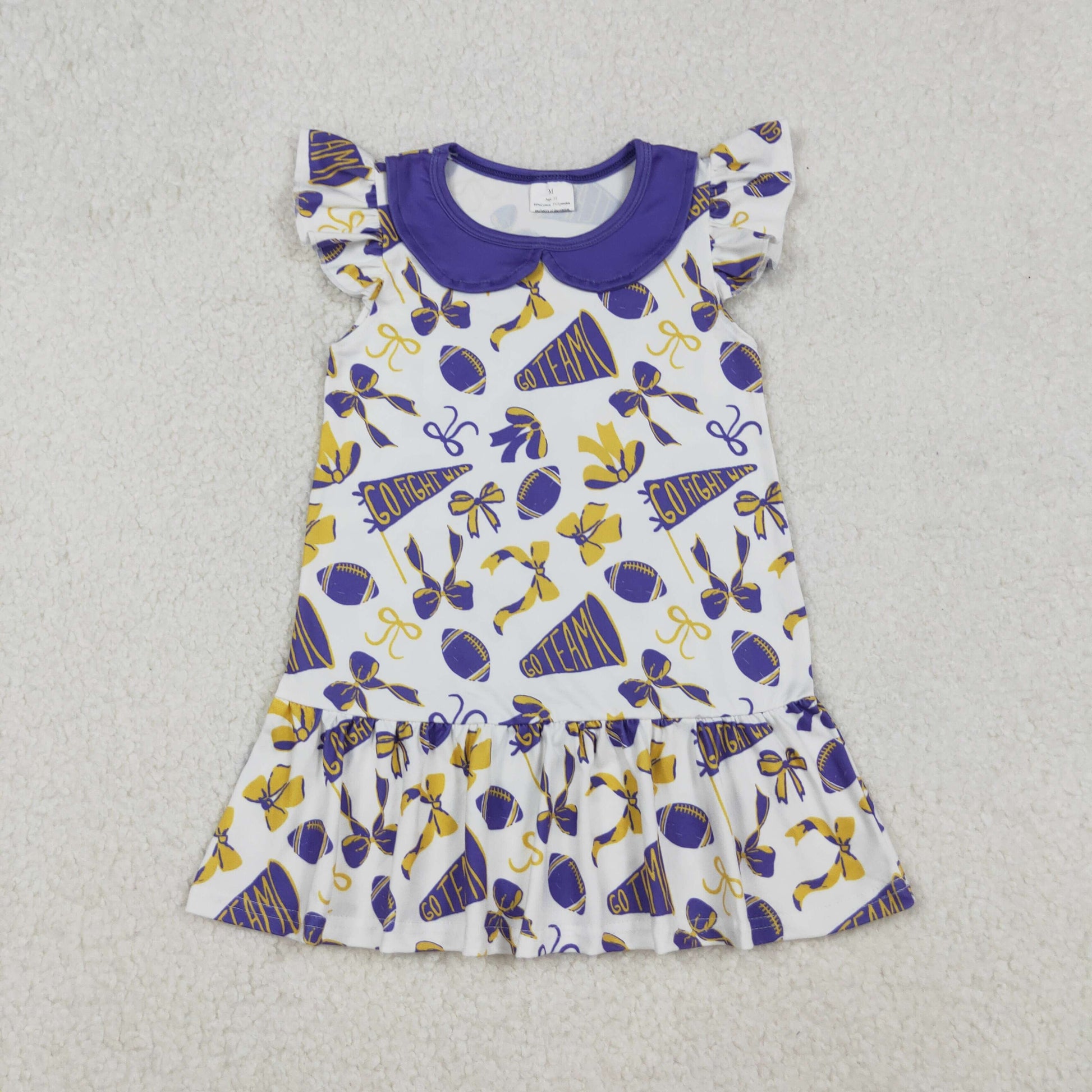 GSD2784 Go Team Cheer Purple Bows Print Girls Summer Knee Length Dress