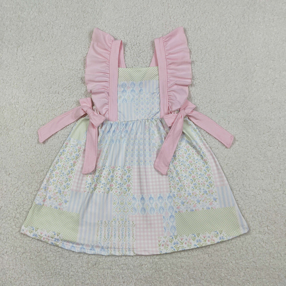 GSD3249 Small Flowers Plaid Print Girls Summer Knee Length Dress