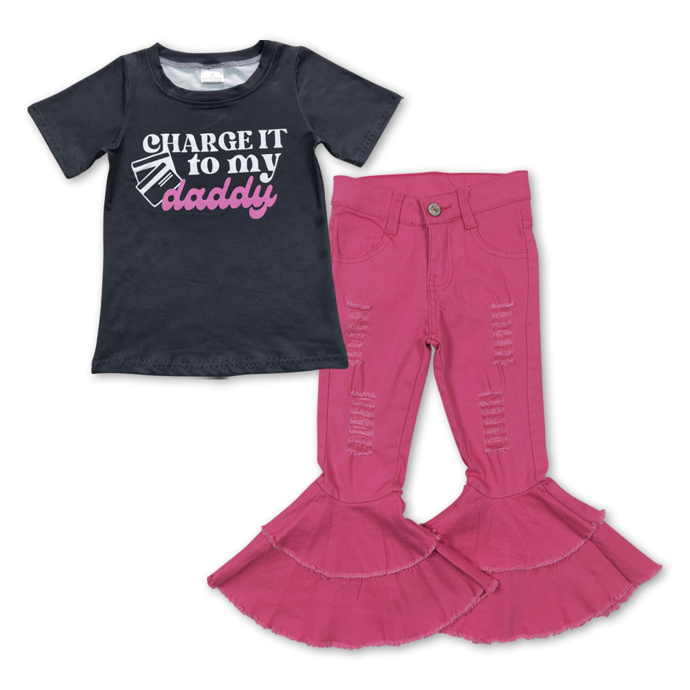 GSPO0935 Charge It To My Daddy Top Pink Denim Jeans Girls Clothes Set