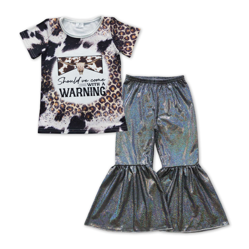 GSPO1073 Should've Come With A Warning Leopard Top Black Bell Pants Girls Western Clothes Set