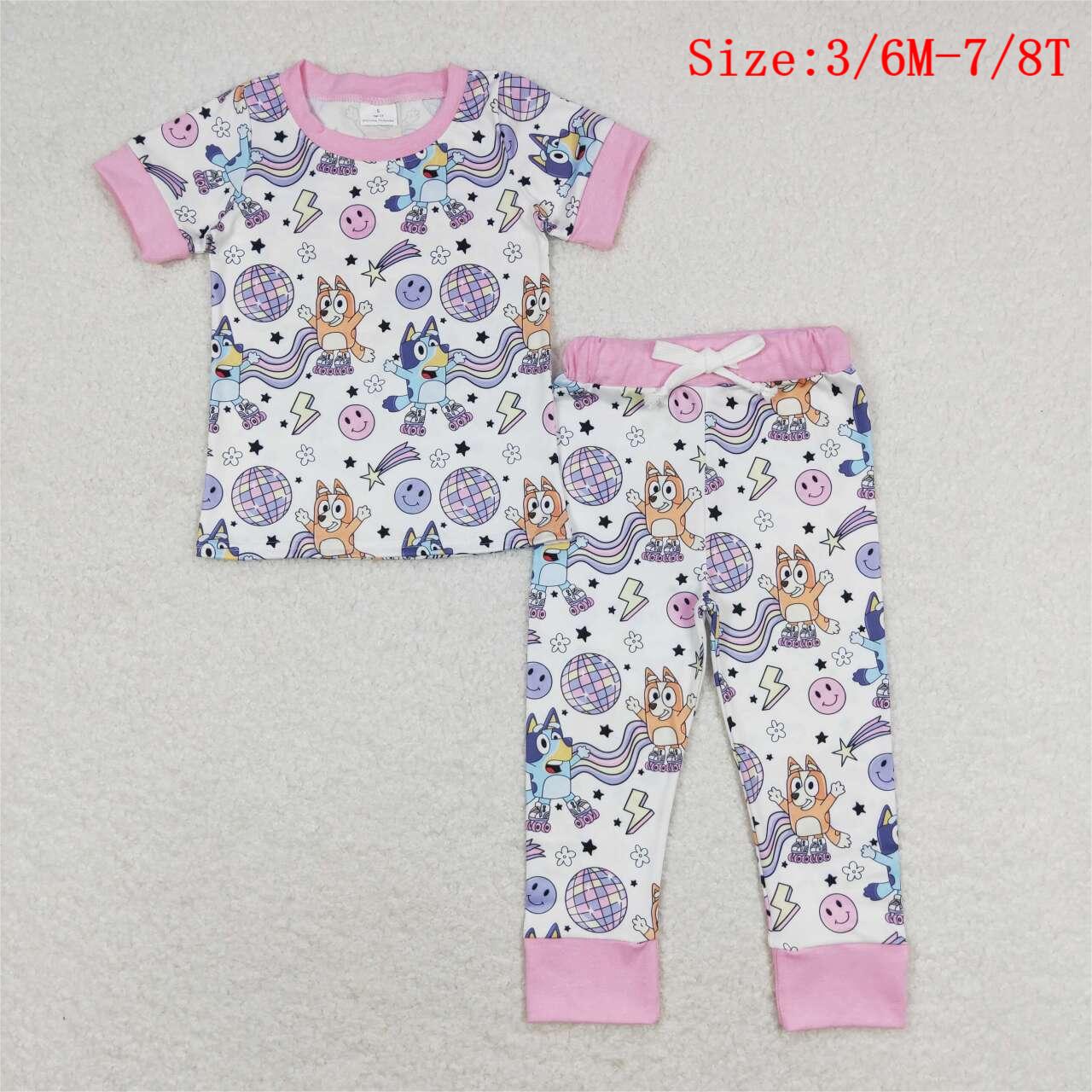 GSPO1508 Cartoon Dog Disco Print Girls Pajamas Clothes Set