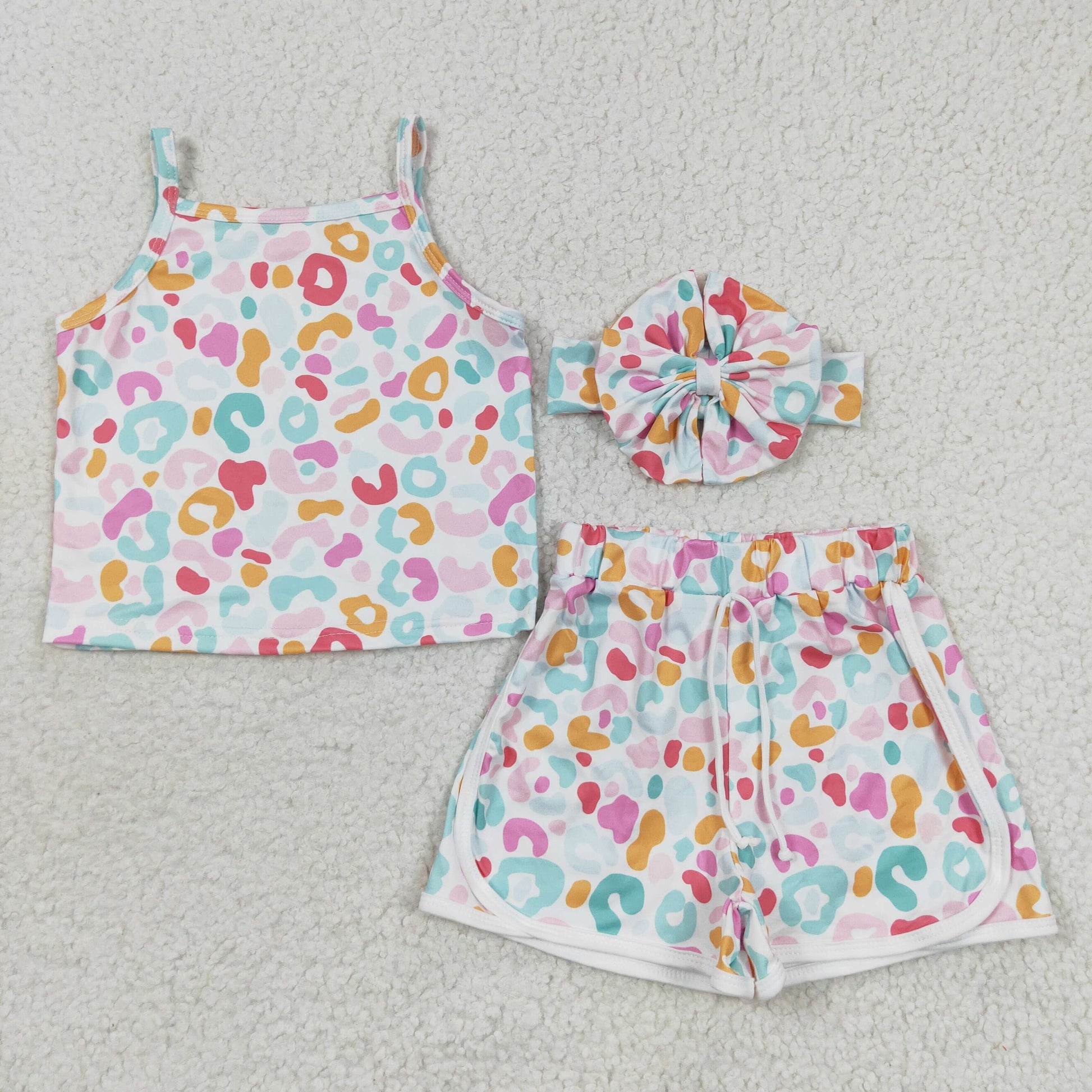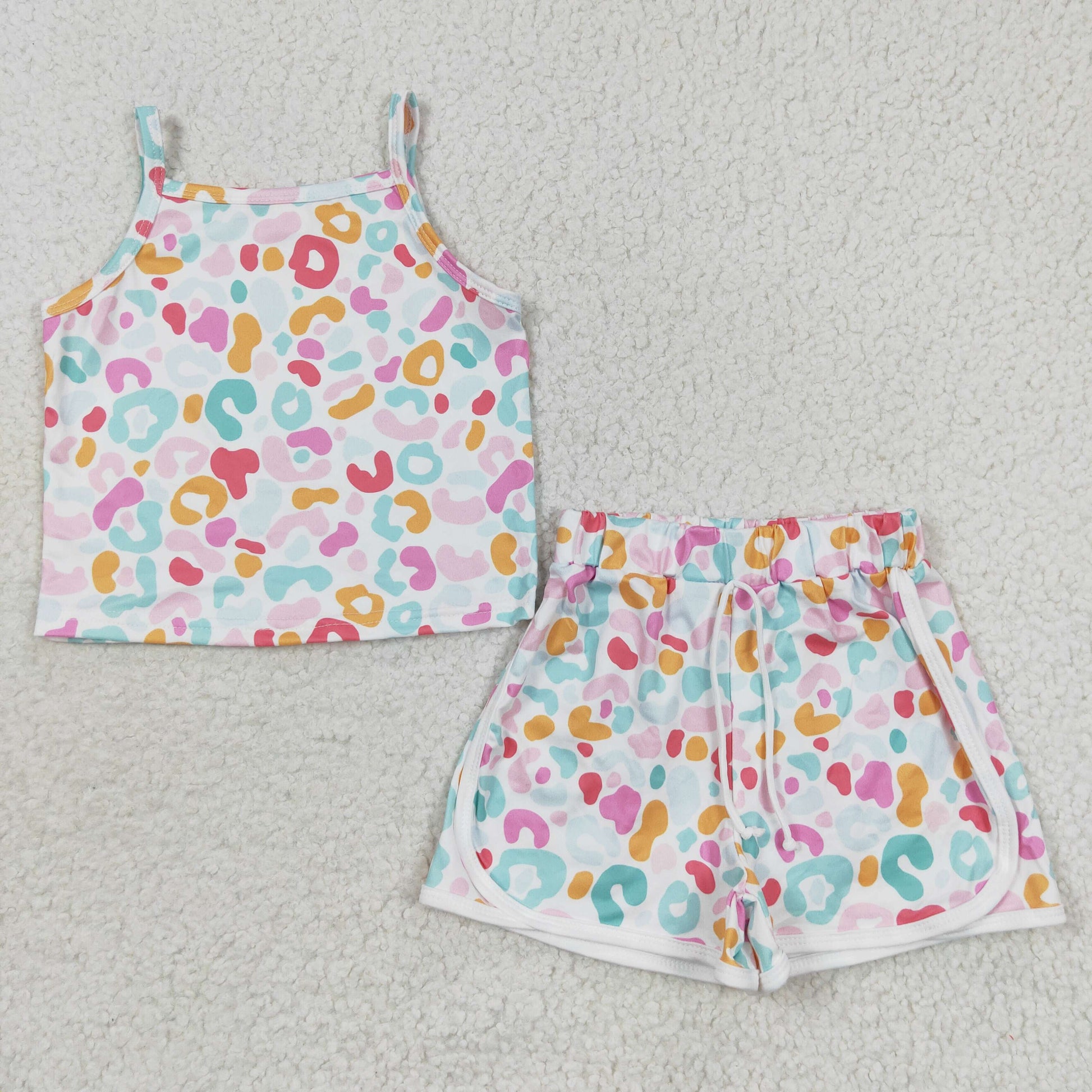 GSSO0342 Girls colorful leopard shorts summer clothes set