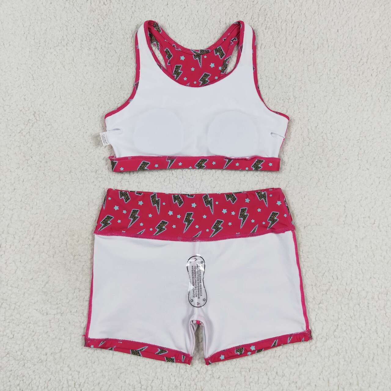GSSO0903 Hot Pink Flash Stars Print Girls Summer Clothes Set