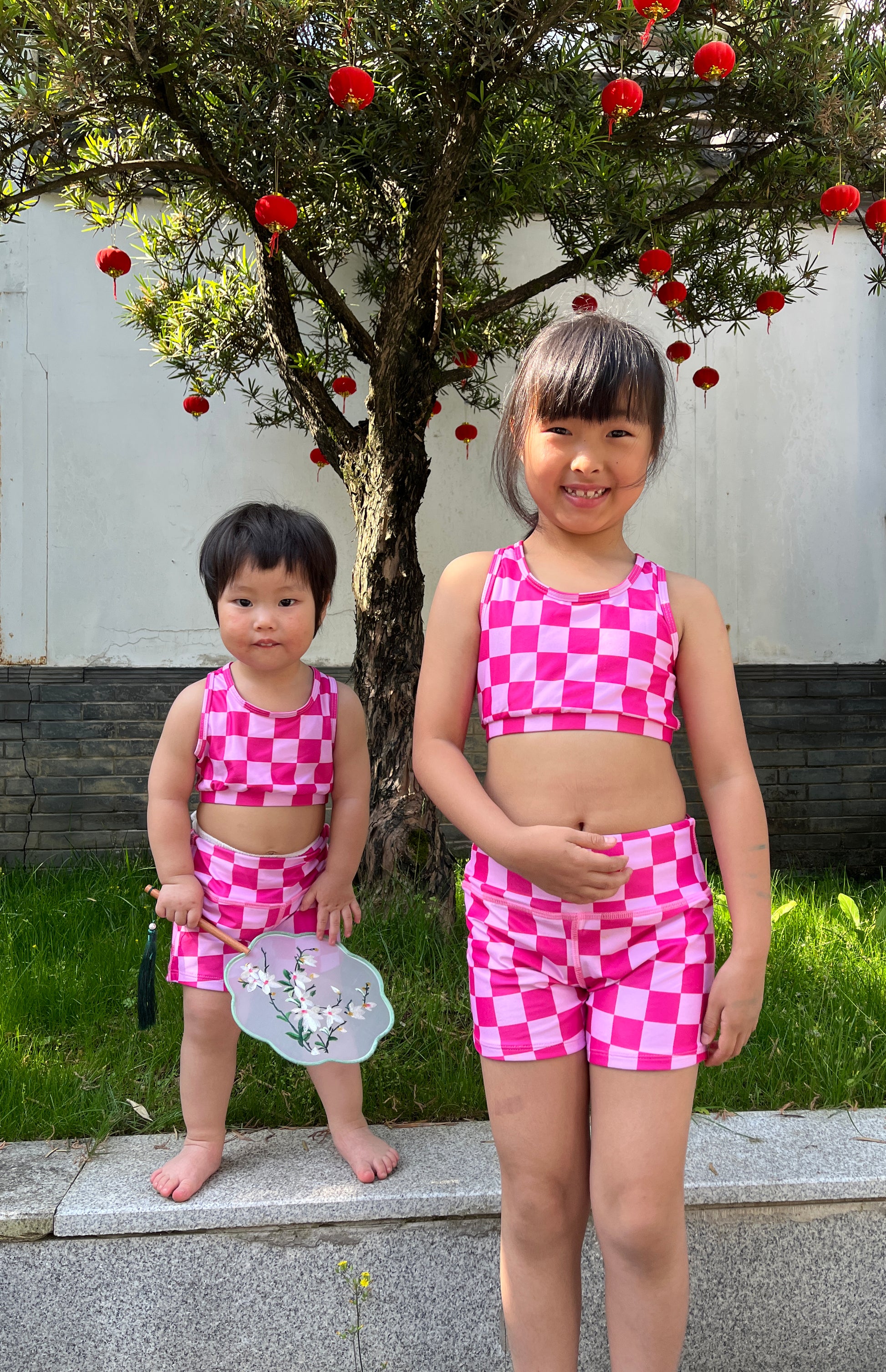 GSSO0905 Hot Pink Plaid Print Girls Summer Clothes Set