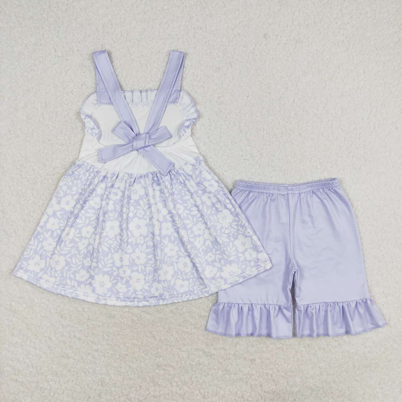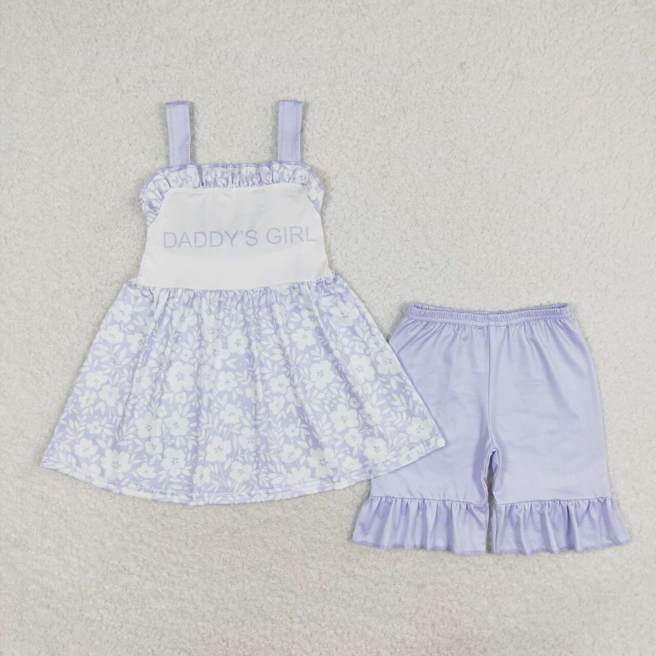 GSSO1069 Daddy's Girl Flowers Tunic Top Ruffle Shorts Girls Summer Clothes Set