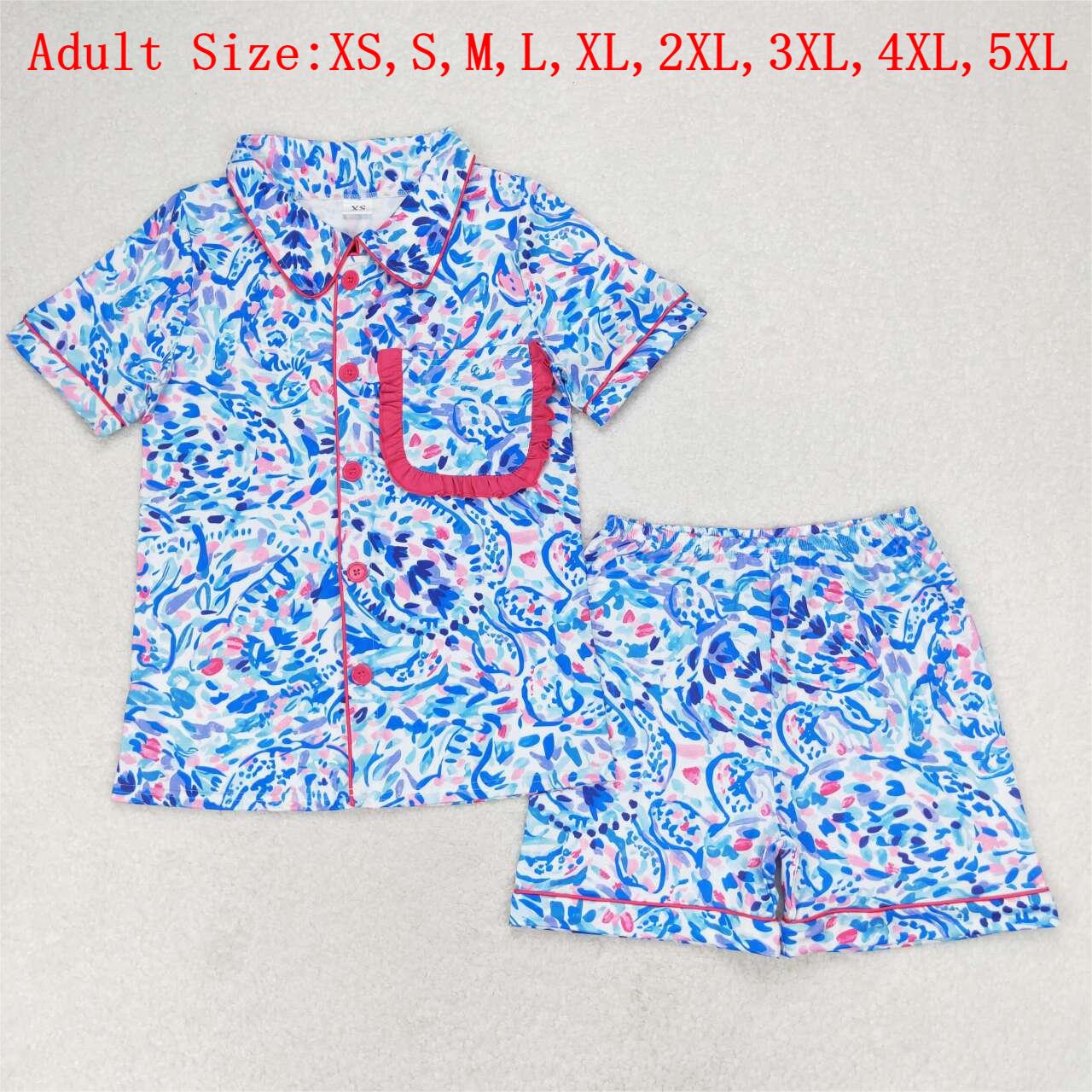 GSSO1097 Adult Purple Turtle Seaweed Print Summer Pajamas Woman Clothes Set