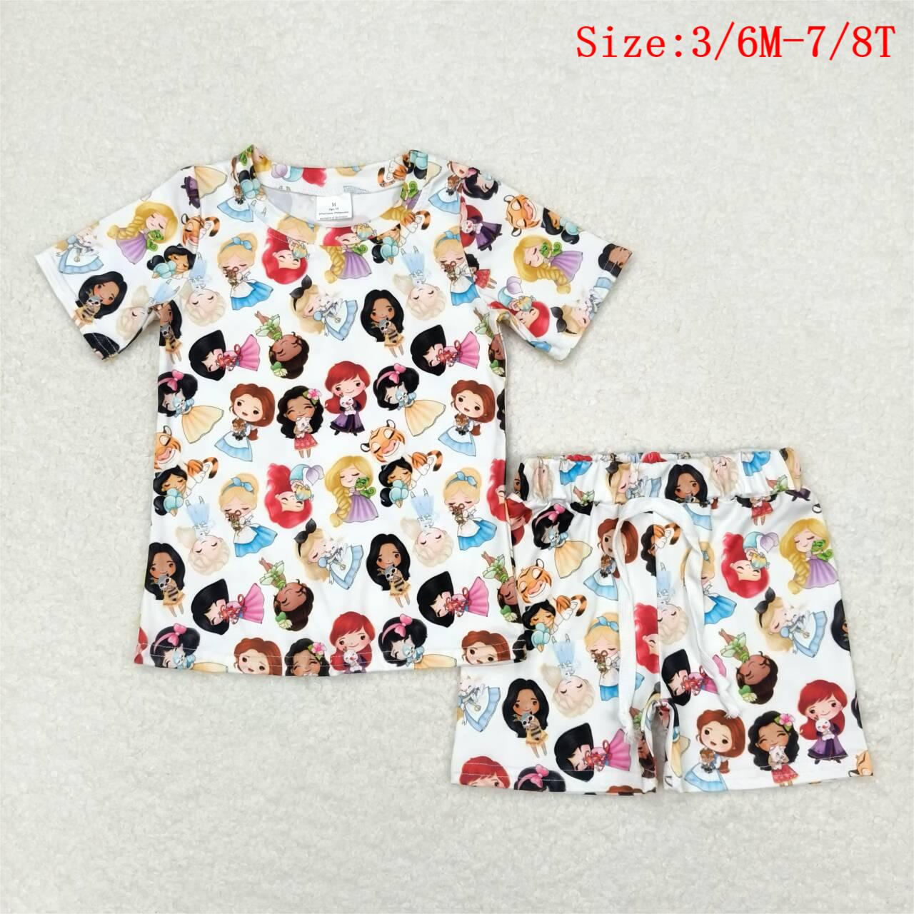 GSSO1099 Cartoon Princess Print Girls Summer Pajamas Clothes Set