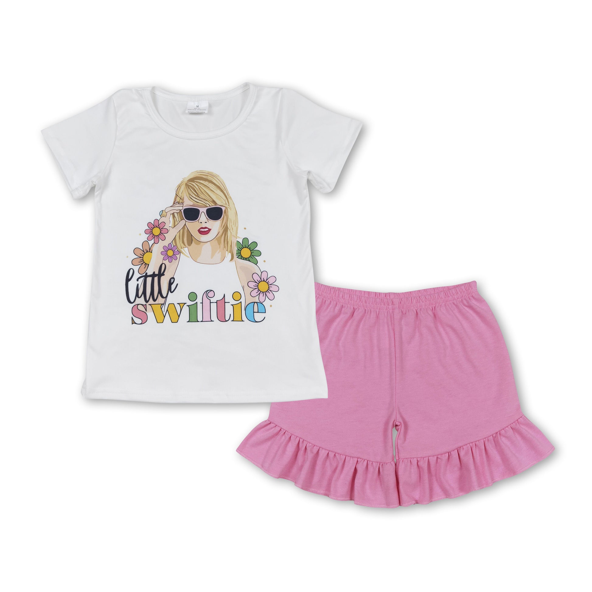 GSSO1395 Singer Swiftie Flowers Top Pink Shorts Girls Summer Clothes Set