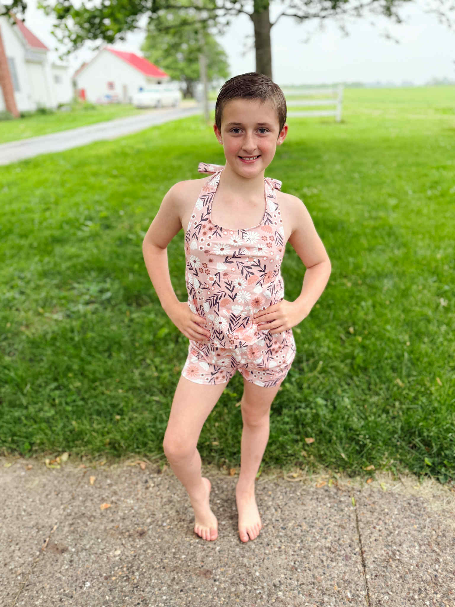 GSSO1870 Brown Flowers Halter Top Shorts Girls Summer Clothes Set