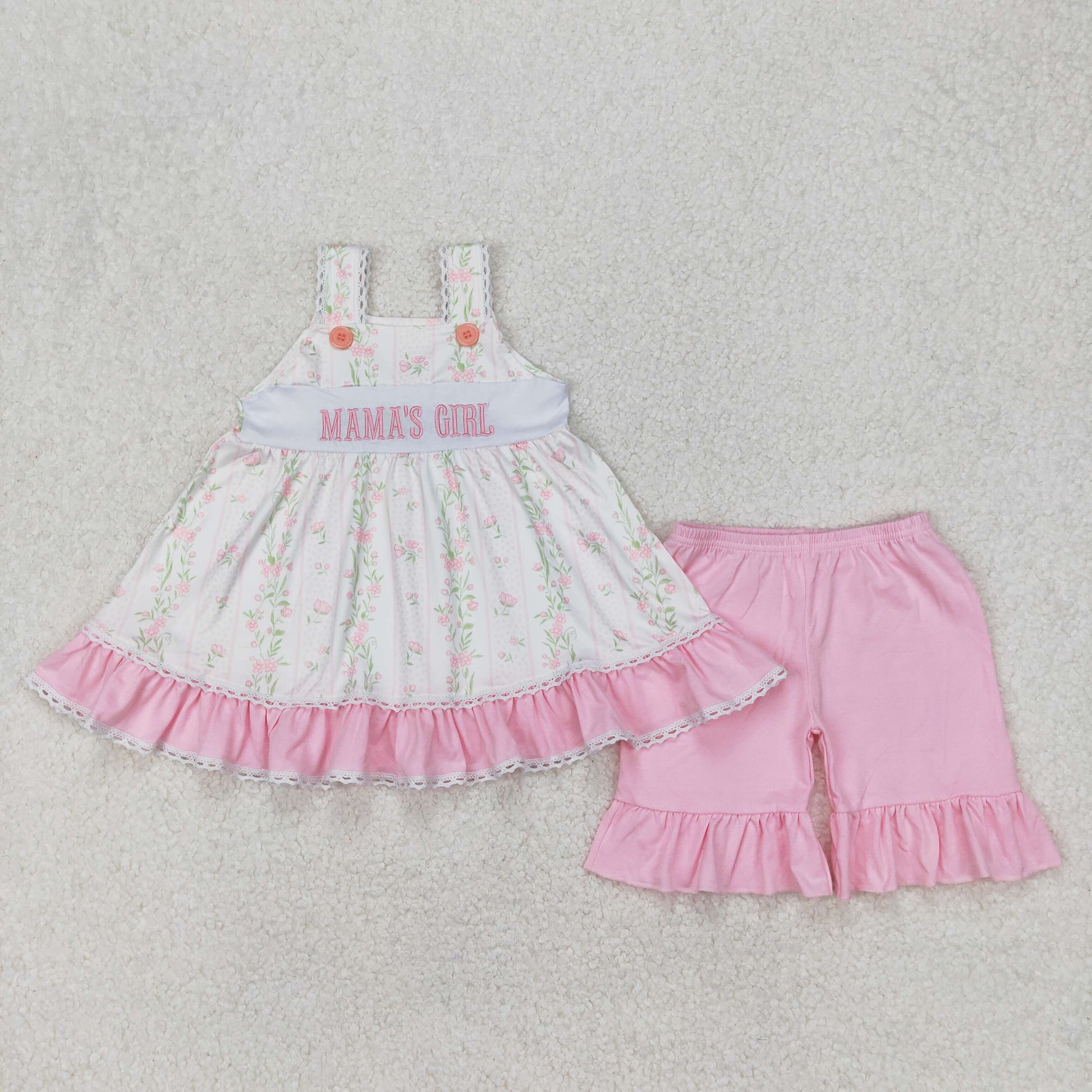 GSSO2153 Mama's Girl Embroidery Flowers Tunic Top Pink Shorts Girls Summer Clothes Set
