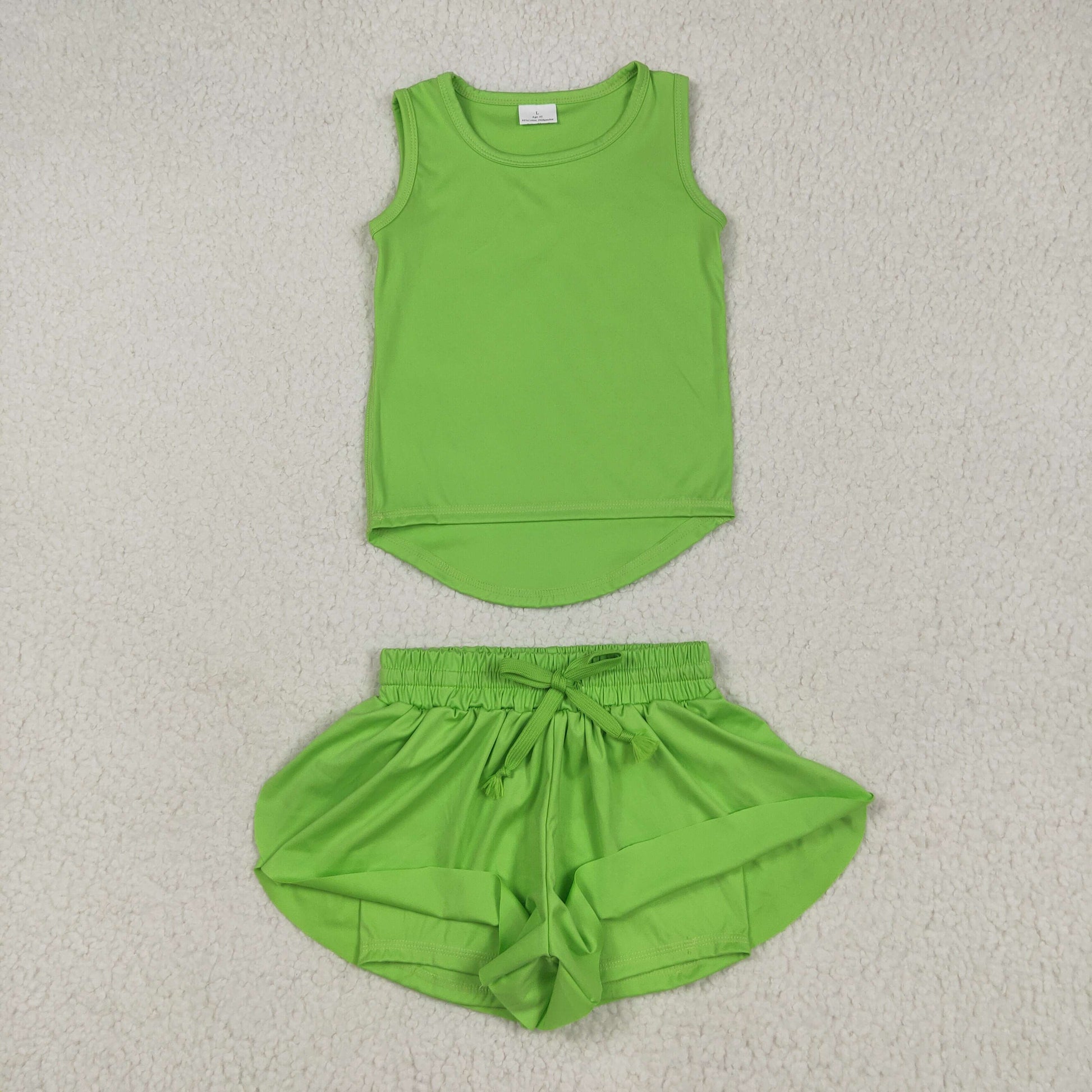 GSSO2503 Green Tank Top Flutter Shorts Girls Summer Yoga Clothes Set