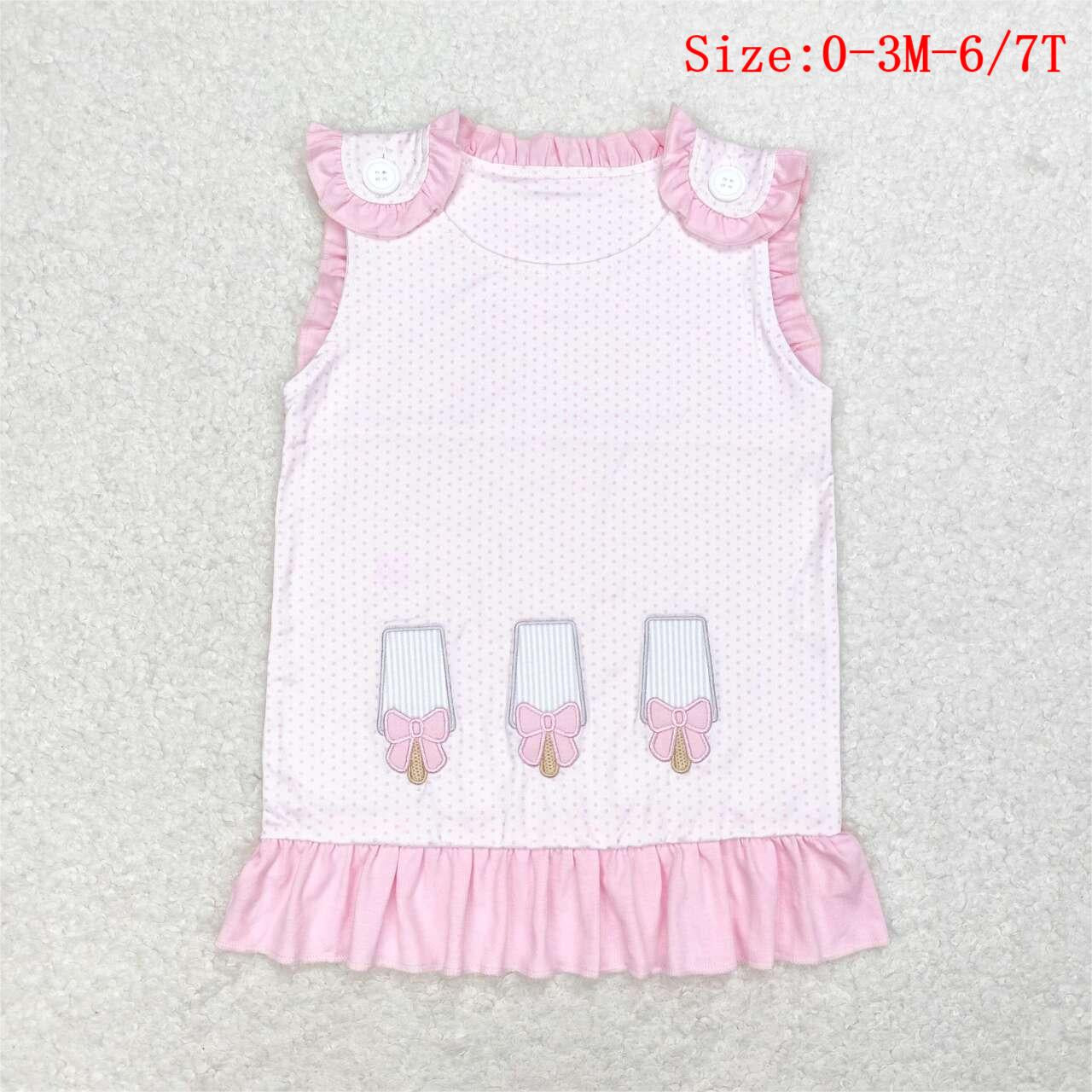 GT0534 Pink Popsicle Embroidery Girls Summer Button Top