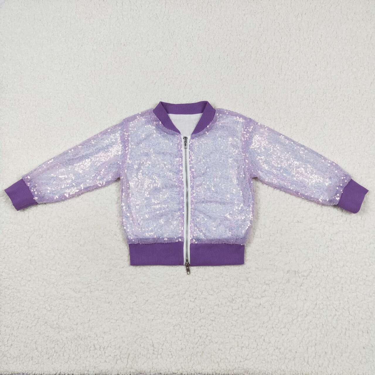 GT0559 Purple Sequins Girls Zipper Jacket Fall Top