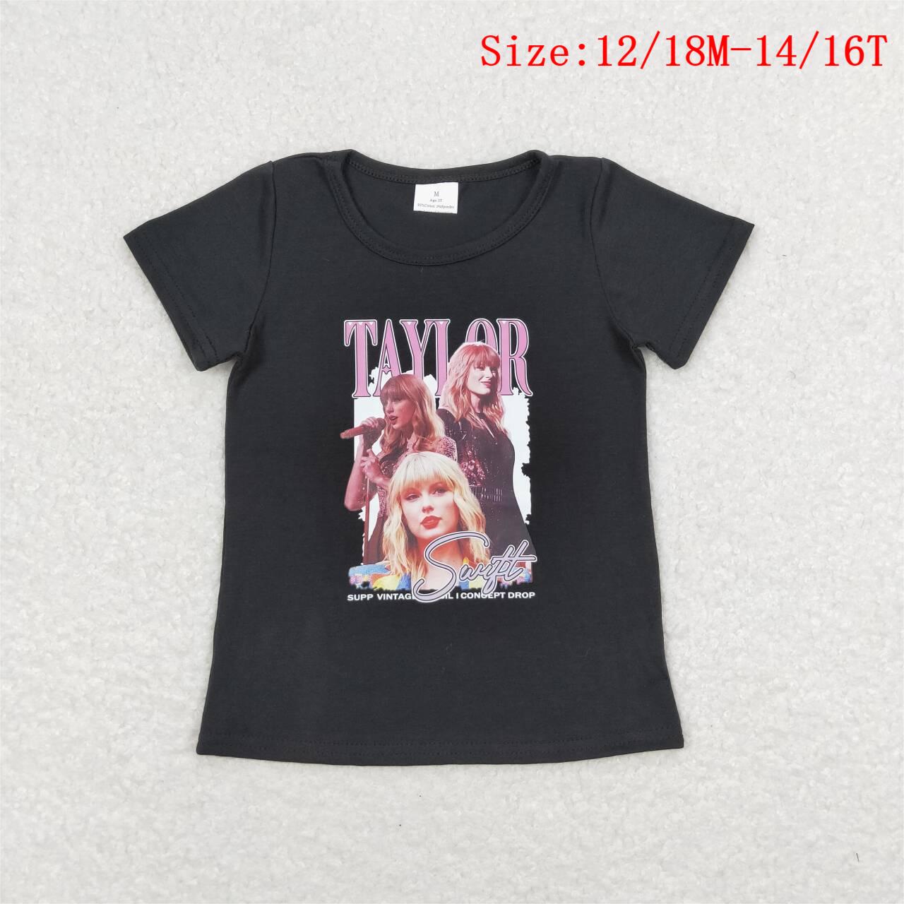 GT0572 Singer Swiftie Black Vinyl Girls Summer Tee Shirts Top
