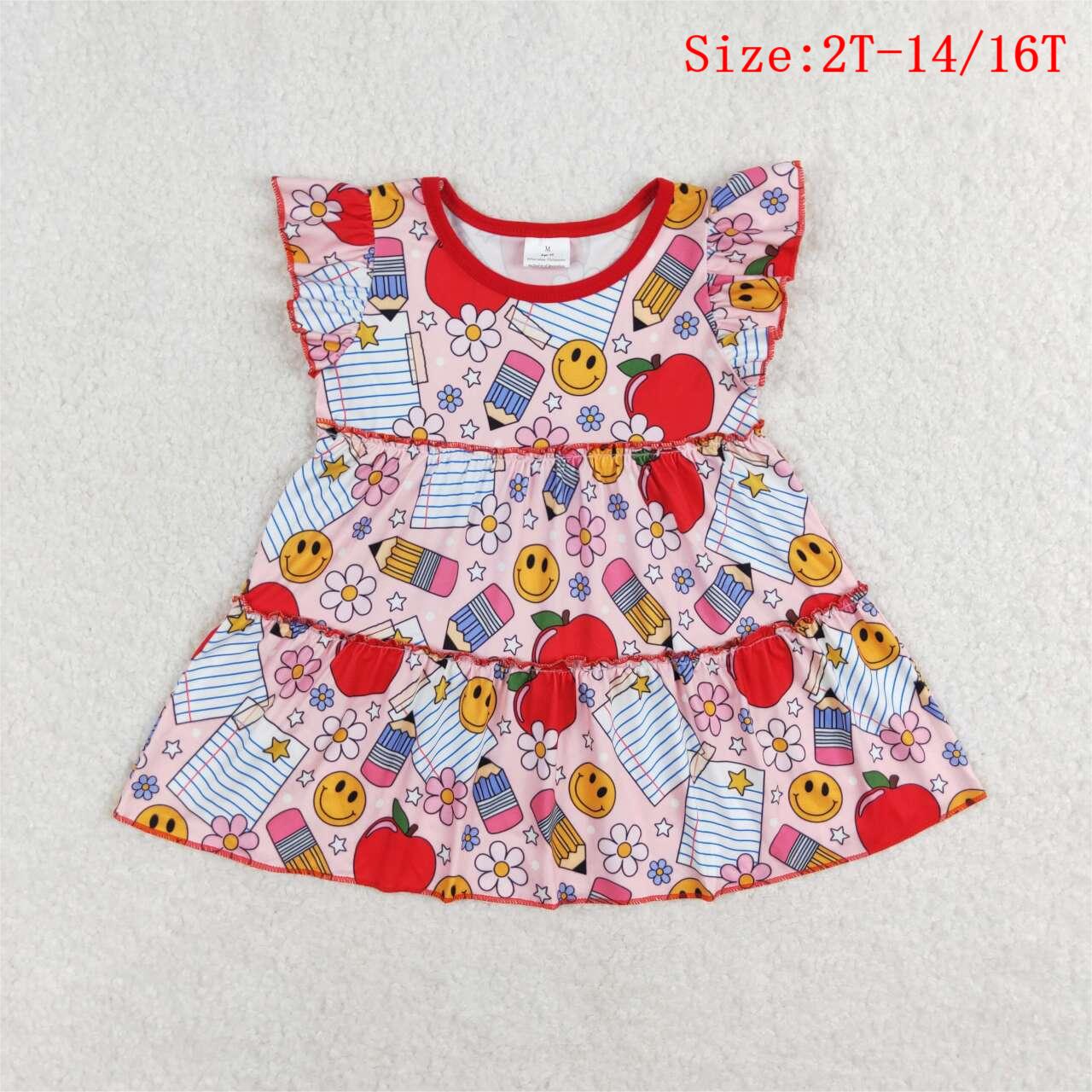 GT0575 Apple Pen Flowers Print Girls Back to School Tee Shirts Top