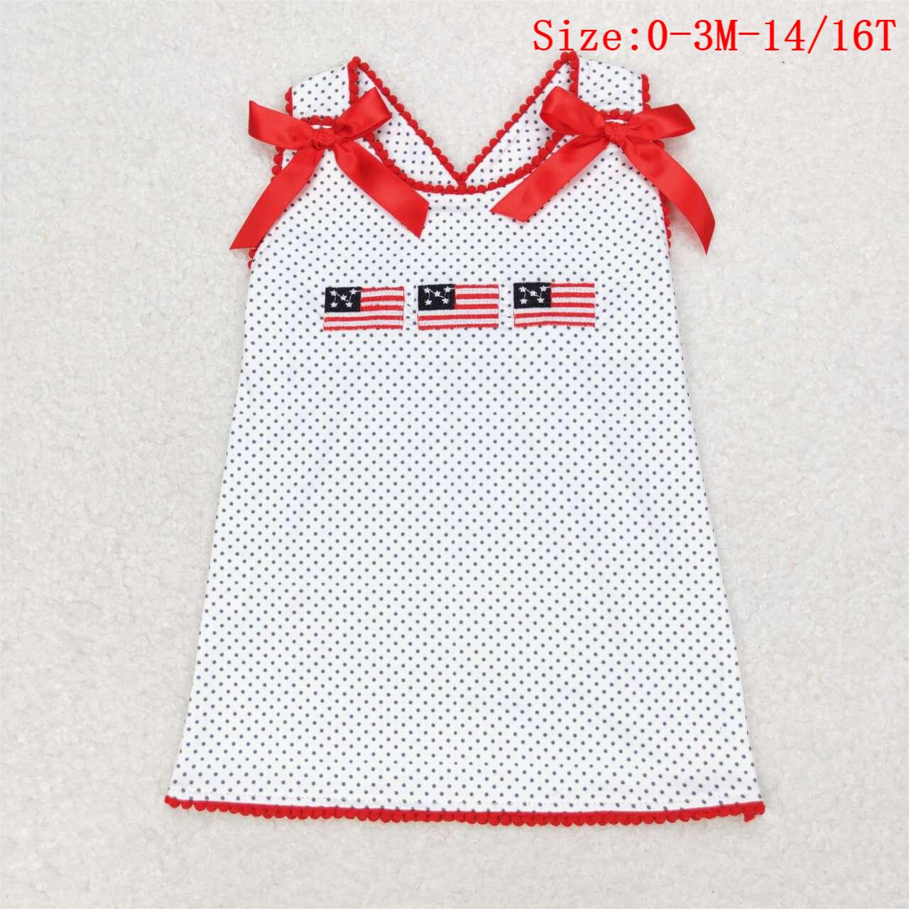 GT0599 Flags Embroidery Dots Print Girls 4thof July Tee Shirts Top