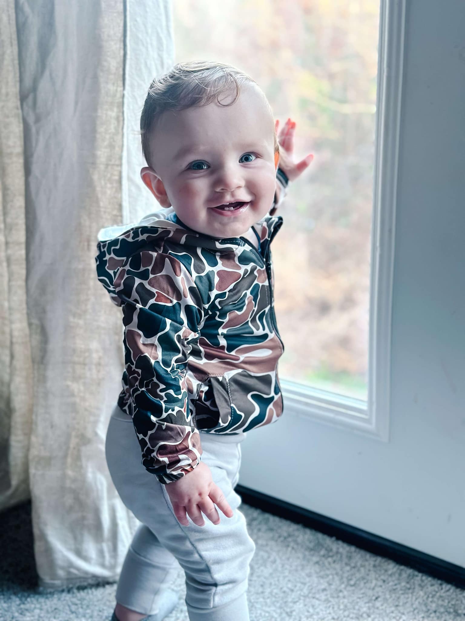 GT0635 Dark Brown Camo Print Pockets Kids Hoodie Zipper Jacker Top
