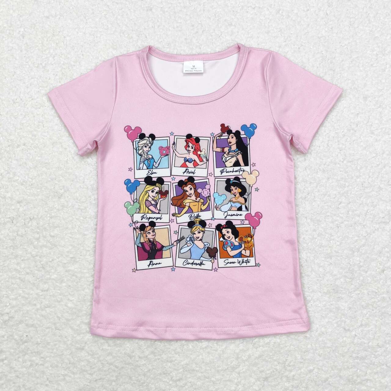 GT0676 Cartoon Princess Pink Print Girls Summer Tee Shirts Top